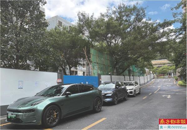 奥一新闻记者实地走访发现,四季青花园紧邻缙山府小区和深圳中学(泥岗校区)。根据现行法定图则,涉事地面停车场位于缙山府小区红线范围内,现被划入四季青花园拆除工程的施工作业区。比对此处原貌照片可见,该停车场与四季青花园间的围墙大部分已被拆除,仅剩余几段白色墙体,停车场内堆满了纸板、木板等建筑垃圾。该工程对停车场实施全封闭管理,在旁侧的小区人行道上设置围挡,致人行道通行宽度缩减近半。虽增设了安全防护棚,仍有部分业主担忧存在建筑废物飞溅的安全隐患。