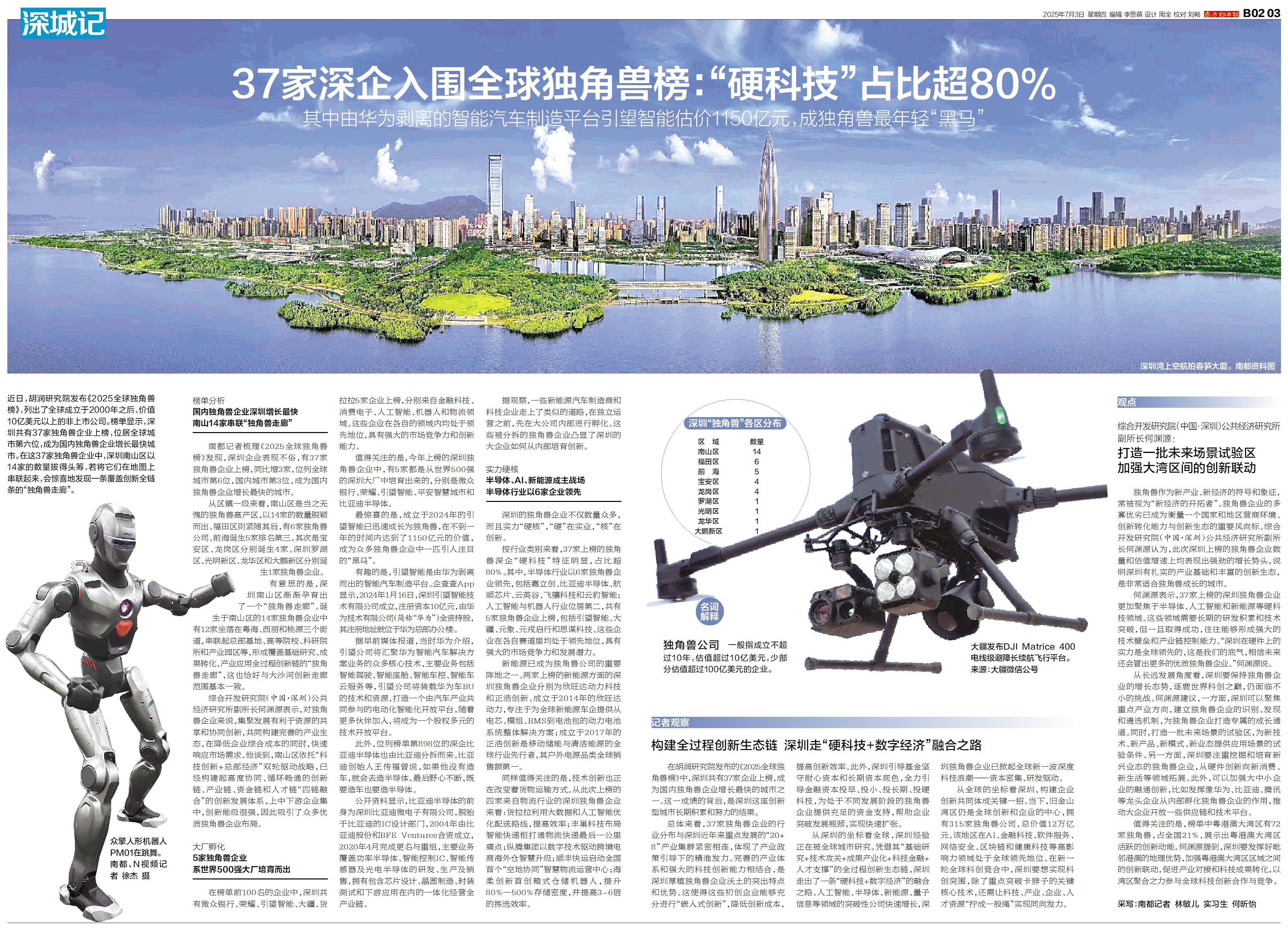 37家深企入围全球独角兽榜:“硬科技”占比超80%