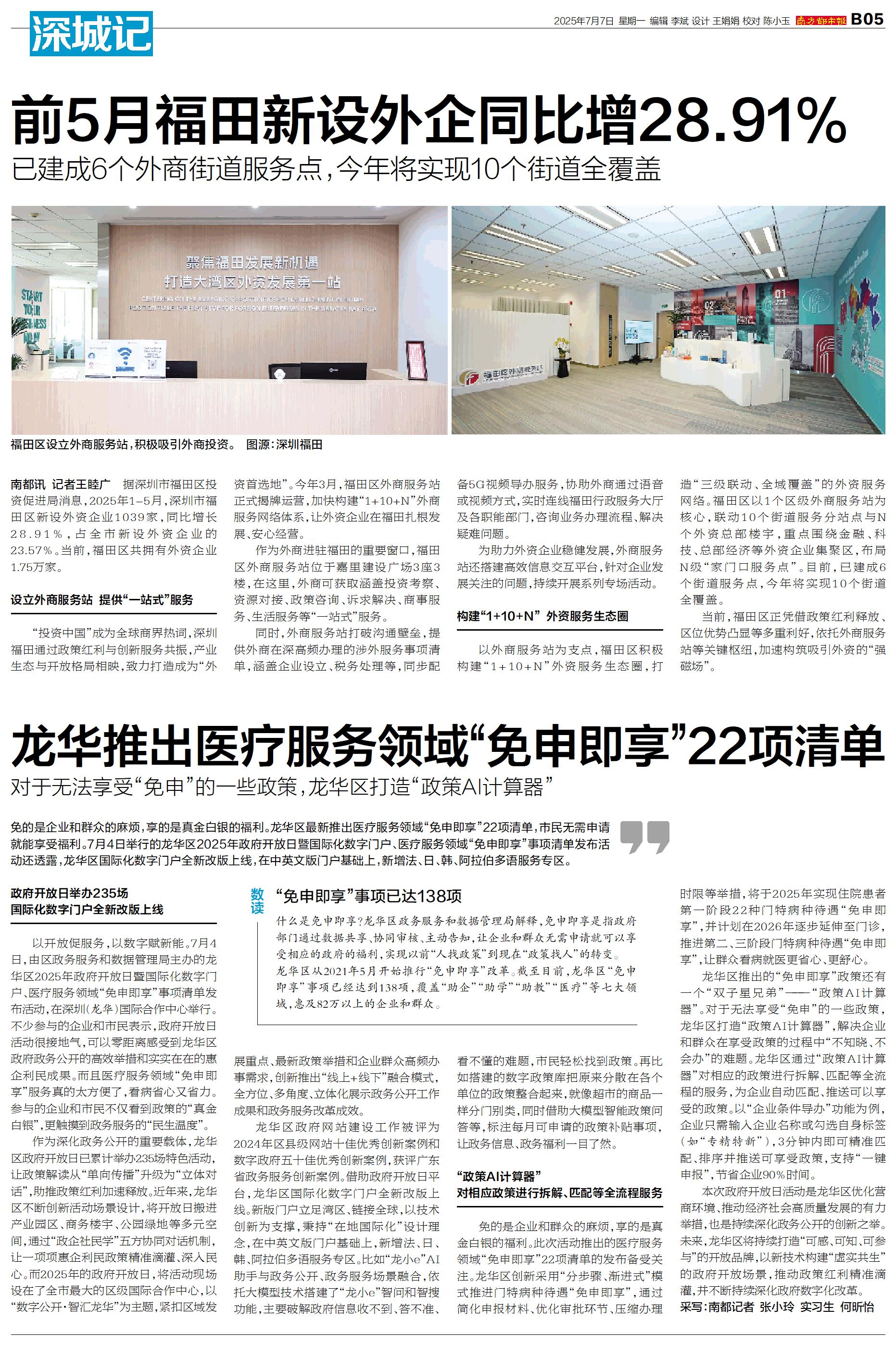 免的是企业和群众的麻烦,享的是真金白银的福利。龙华区最新推出医疗服务领域“免申即享”22项清单,市民无需申请就能享受福利。7月4日举行的龙华区2025年政府开放日暨国际化数字门户、医疗服务领域“免