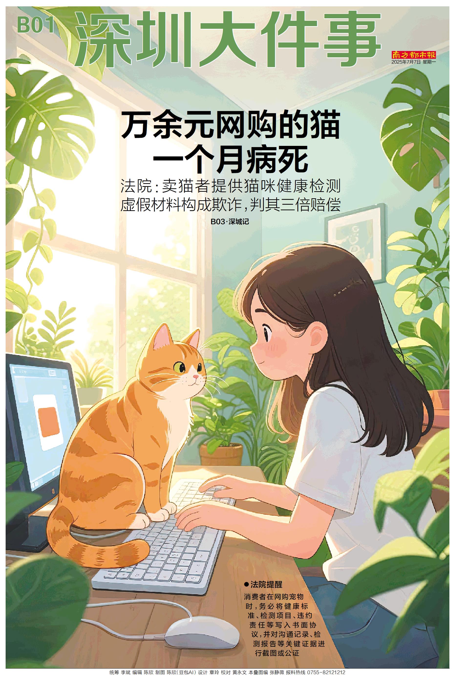 法院提醒 消费者在网购宠物时,务必将健康标准、检测项目、违约责任等写入书面协议,并对沟通记录、检测报告等关键证据进行截图或公证 B03·深城记