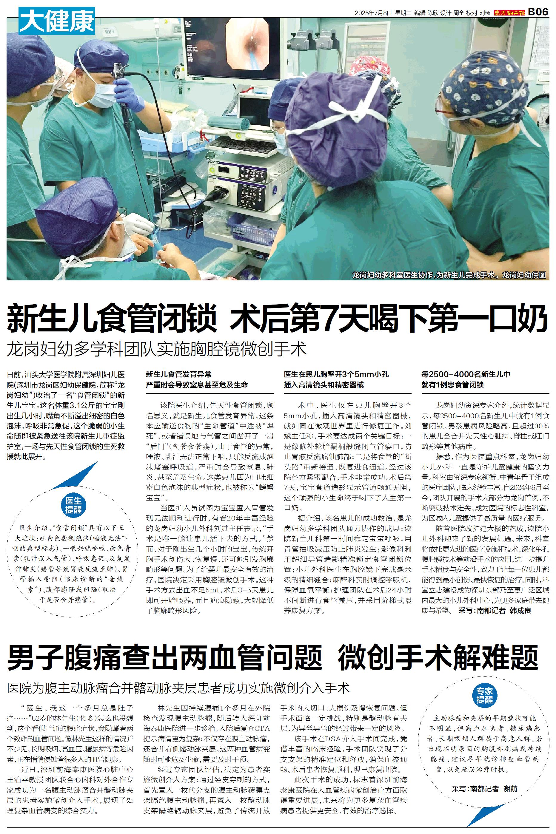 日前,汕头大学医学院附属深圳妇儿医院(深圳市龙岗区妇幼保健院,简称“龙岗妇幼”)收治了一名“食管闭锁”的新生儿宝宝。这名体重3.1公斤的宝宝刚出生几小时,嘴角不断溢出细密的白色泡沫,呼吸非常急促,