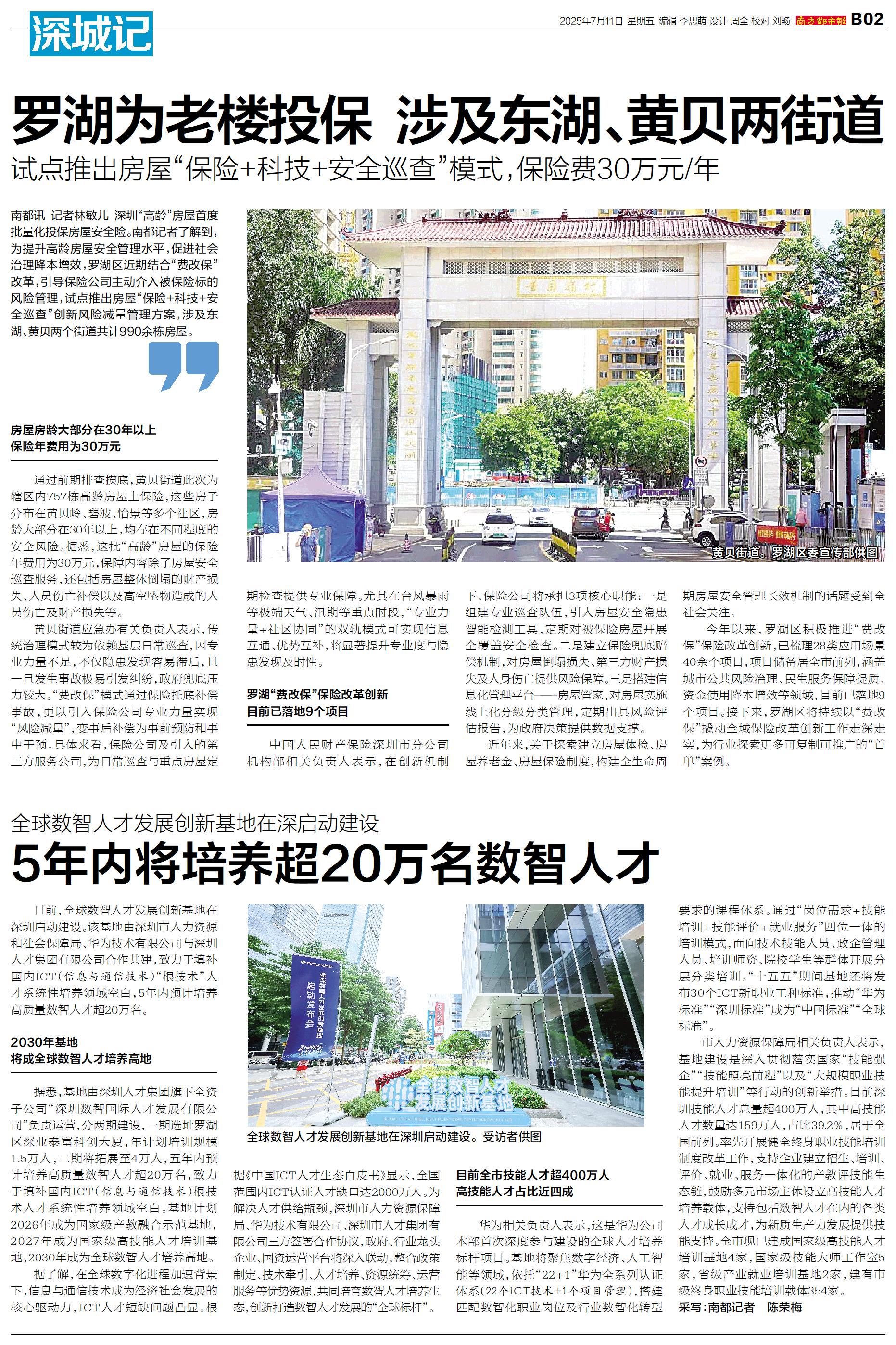 华为相关负责人表示,这是华为公司本部首次深度参与建设的全球人才培养标杆项目。基地将聚焦数字经济、人工智能等领域,依托“22+1”华为全系列认证体系(22个ICT技术+1个项目管理),搭建匹配数智化职业岗位及行业数智化转型要求的课程体系。通过“岗位需求+技能培训+技能评价+就业服务”四位一体的培训模式,面向技术技能人员、政企管理人员、培训师资、院校学生等群体开展分层分类培训。“十五五”期间基地还将发布30个ICT新职业工种标准,推动“华为标准”“深圳标准”成为“中国标准”“全球标准”。