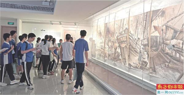 学生观看特展“烽火铸骨——关山月艺术中的民族精神图谱”。