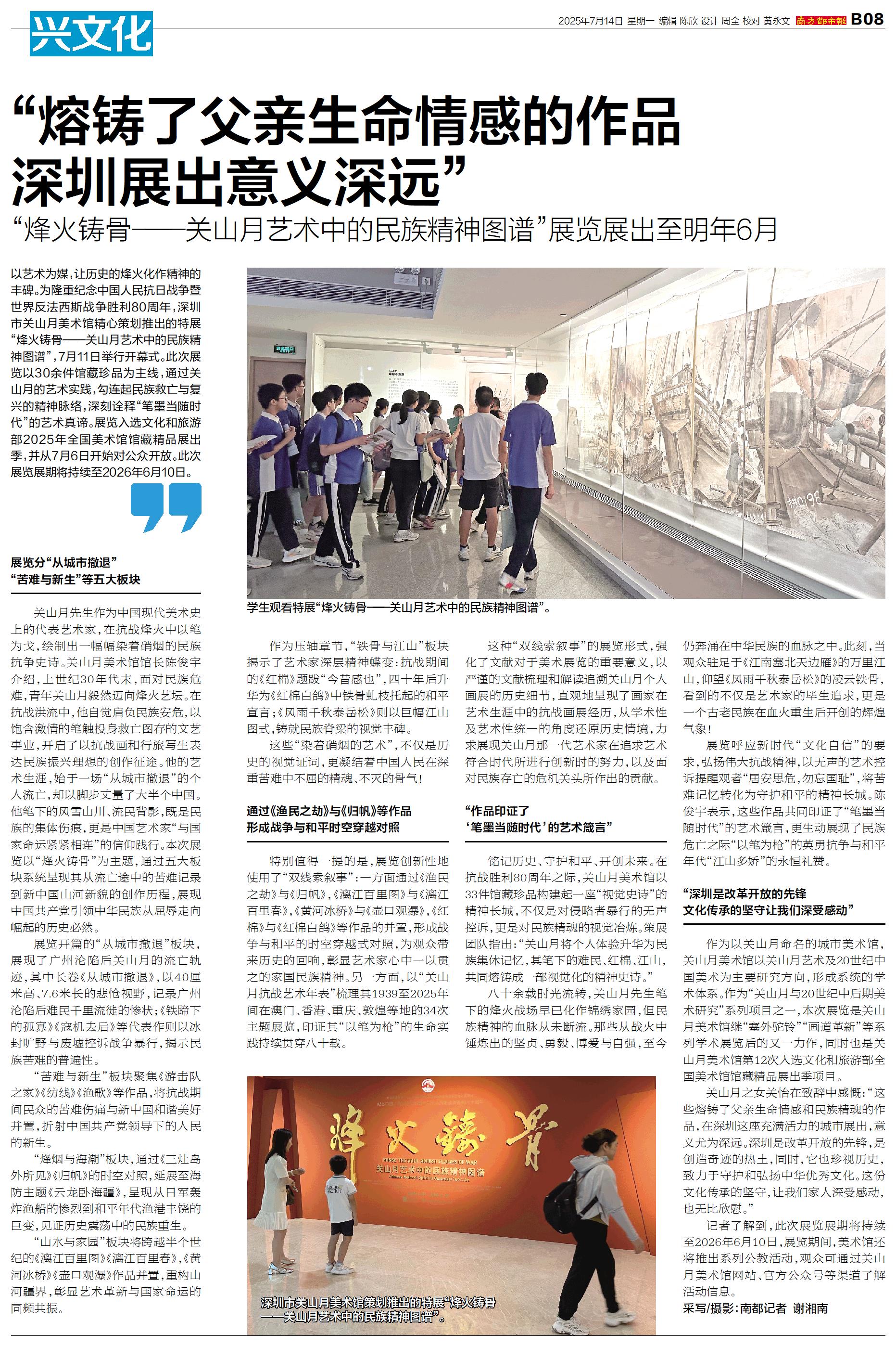 以艺术为媒,让历史的烽火化作精神的丰碑。为隆重纪念中国人民抗日战争暨世界反法西斯战争胜利80周年,深圳市关山月美术馆精心策划推出的特展 “烽火铸骨——关山月艺术中的民族精神图谱”,7月11日举行开