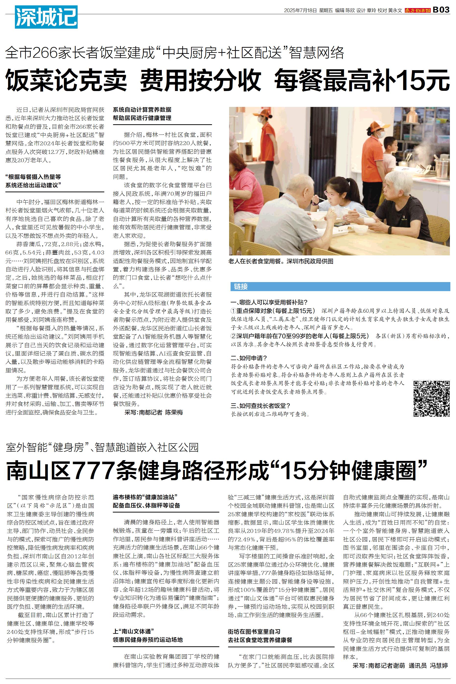 近日,记者从深圳市民政局官网获悉,近年来深圳大力推动社区长者饭堂和助餐点的普及,目前全市266家长者饭堂已建成“中央厨房+社区配送”智慧网络。全市2024年长者饭堂和助餐点服务人次突破12.7万,财政补贴精准惠及20万老年人。