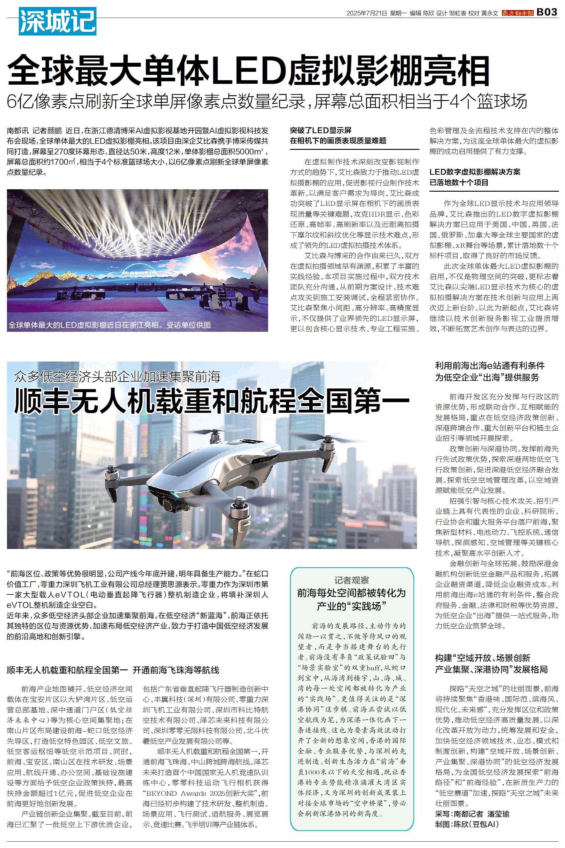 南都讯 记者颜鹏 近日,在浙江德清博采AI虚拟影视基地开园暨AI虚拟影视科技发布会现场,全球单体最大的LED虚拟影棚亮相。该项目由深企艾比森携手博采传媒共同打造,屏幕呈270度环幕形态,直径达50米,高度12米,单体影棚总面积5000m²,屏幕总面积约1700㎡,相当于4个标准篮球场大小,以6亿像素点刷新全球单屏像素点数量纪录。