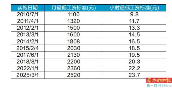 南都记者梳理了深圳近15年的最低工资标准的变化:深圳最初实施最低工资标准是在1992年,是全国最早建立最低工资制度的城市之一,体现了特区在劳动保障领域的先行探索。