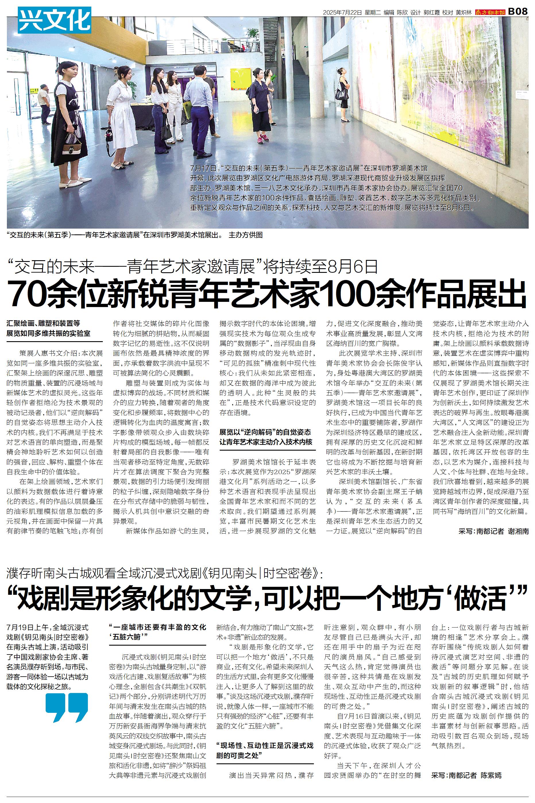 7月17日,“交互的未来(第五季)——青年艺术家邀请展”在深圳市罗湖美术馆开幕,此次展览由罗湖区文化广电旅游体育局、罗湖深港现代商贸业升级发展区指挥部主办,罗湖美术馆、三一八艺术文化承办,深圳市青