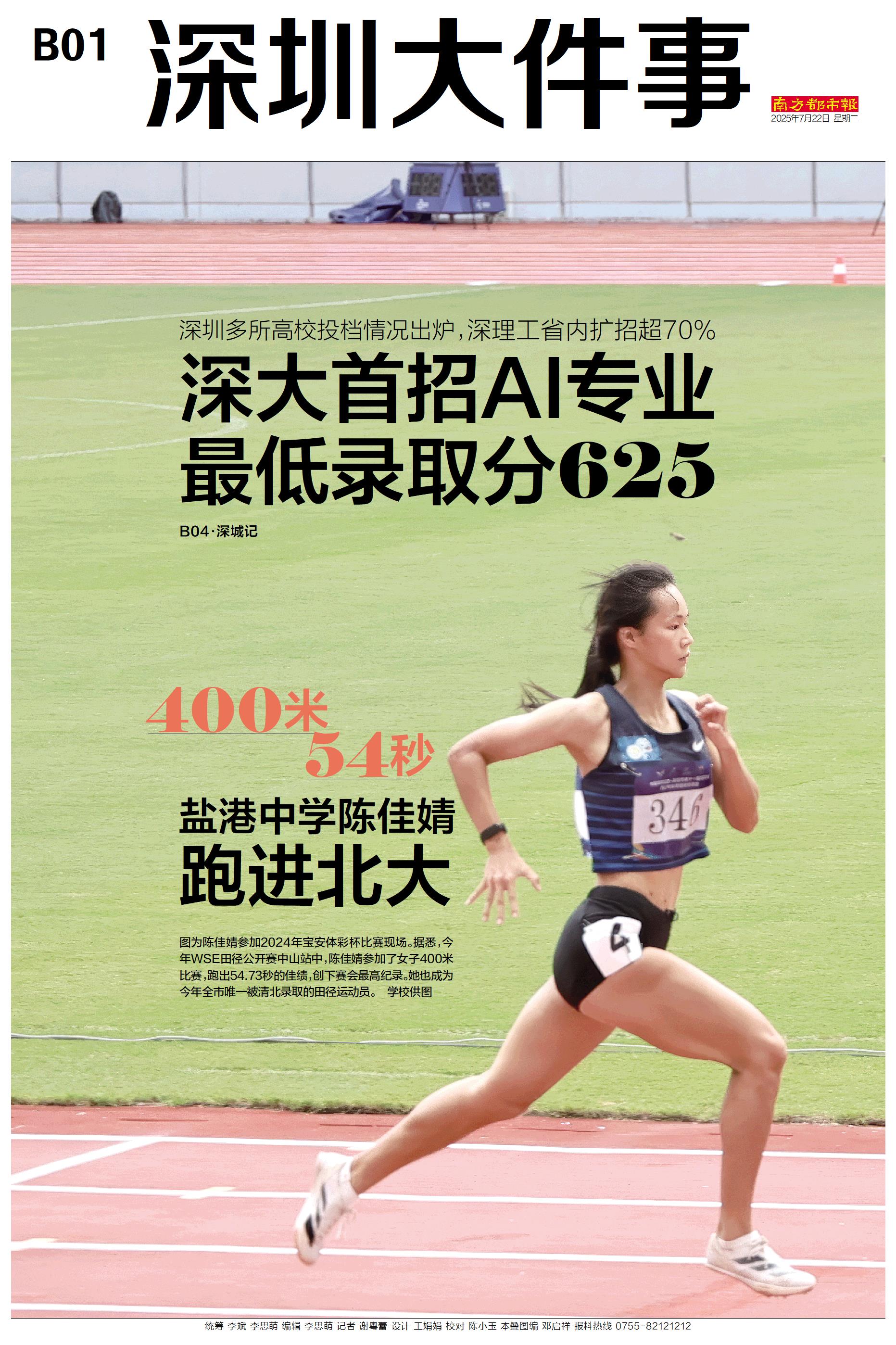 图为陈佳婧参加2024年宝安体彩杯比赛现场。据悉,今年WSE田径公开赛中山站中,陈佳婧参加了女子400米比赛,跑出54.73秒的佳绩,创下赛会最高纪录。她也成为今年全市唯一被清北录取的田径运动员。