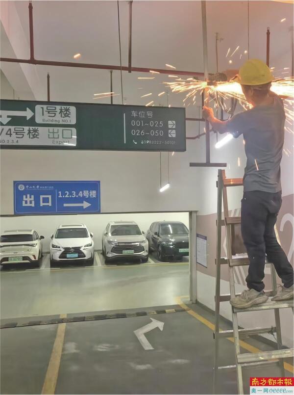 中山大学附属第八医院(深圳福田)拆除地下停车场部分遮挡标牌。 深医测评报道组 摄