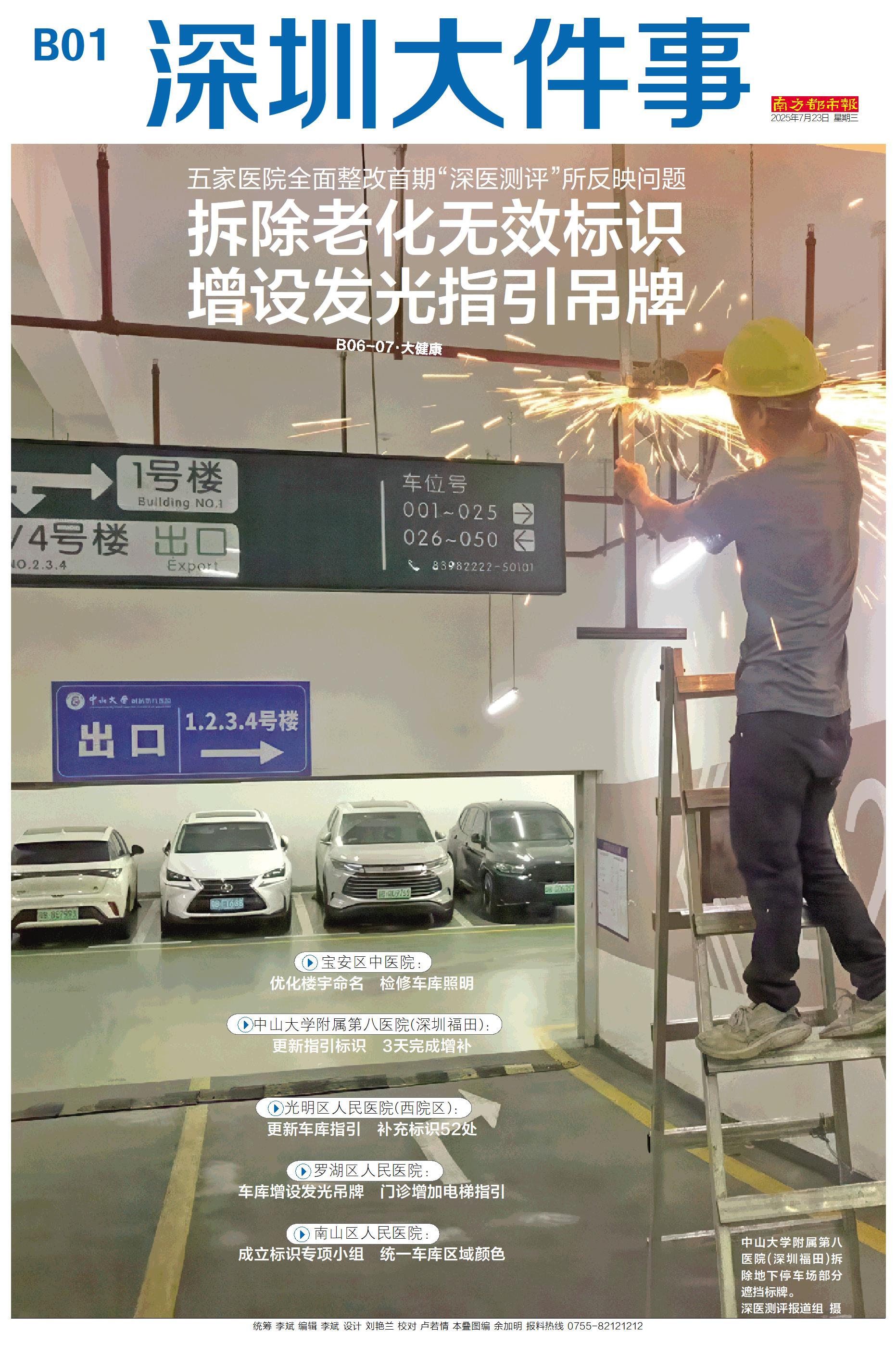 宝安区中医院: 优化楼宇命名 检修车库照明 中山大学附属第八医院(深圳福田): 更新指引标识 3天完成增补 光明区人民医院(西院区): 更新车库指引 补充标识52处 罗湖区人民