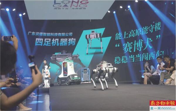 “机器人走秀”成为当天活动的一大亮点。神州云海商用清洁机器人、怪虫机器人光伏清洁卫士、鑫龙浩“白泽”安防巡逻机器人、煜禾森全能型移动底盘、灵锶智能四足机器狗以及领益智造“灵识”具身机器人……六款产品在现场观众的注视下,灵活展示着各自的看家本领,从精准清洁、安防巡逻到家庭陪伴,全方位展示了龙岗在机器人领域的技术实力和应用潜力。