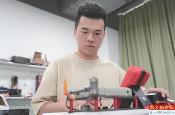 进入高中,徐阳了解到FPV无人机,兴趣很快转向对无人机的探索。来到大学他继续坚持爱好,课余时间会使用学校提供的3D打印机、焊接设备等,不出校门就能完成无人机的制作。