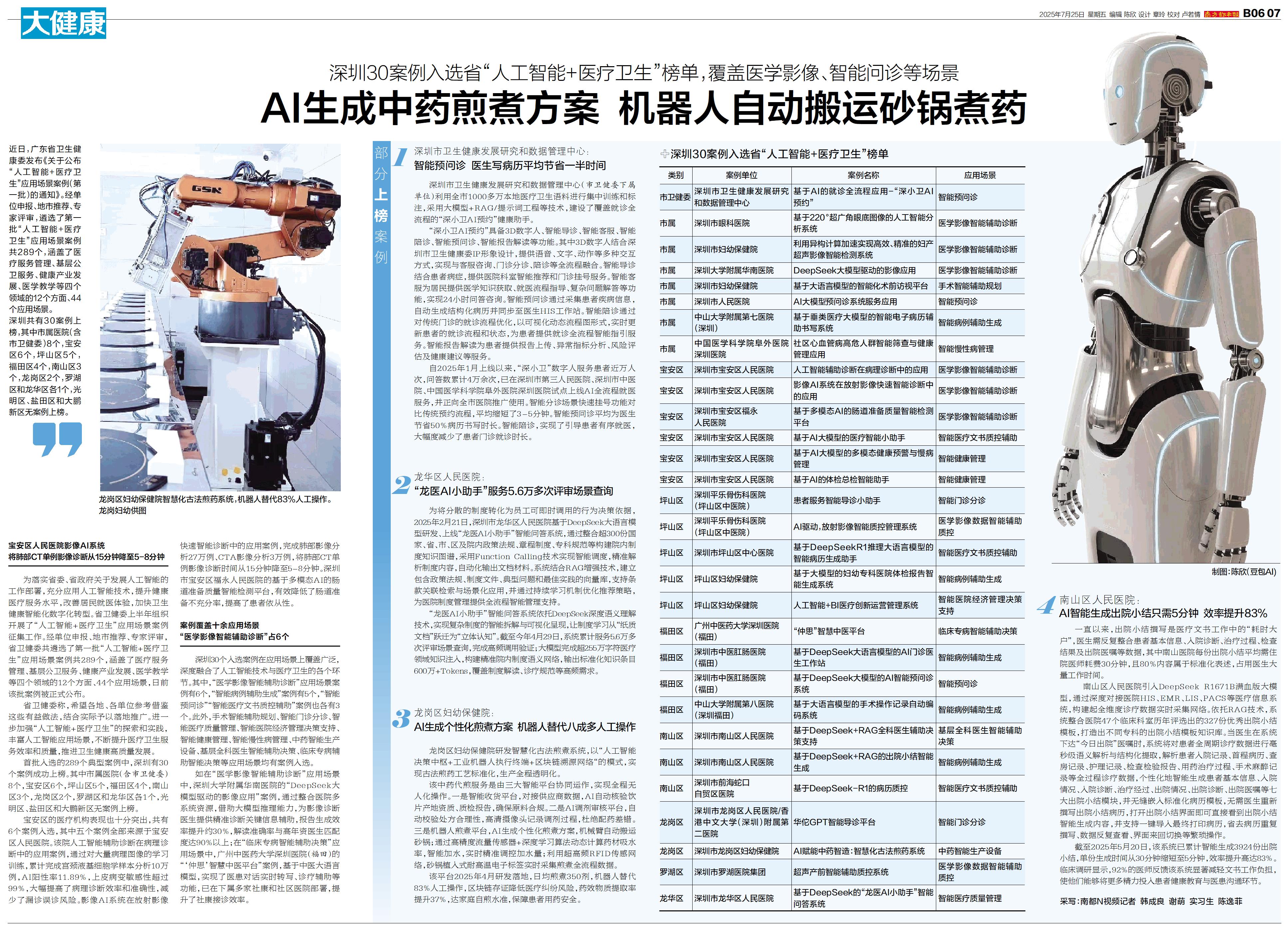 近日,广东省卫生健康委发布《关于公布“人工智能+医疗卫生”应用场景案例(第一批)的通知》。经单位申报、地市推荐、专家评审,遴选了第一批“人工智能+医疗卫生”应用场景案例共289个,涵盖了医疗服务管