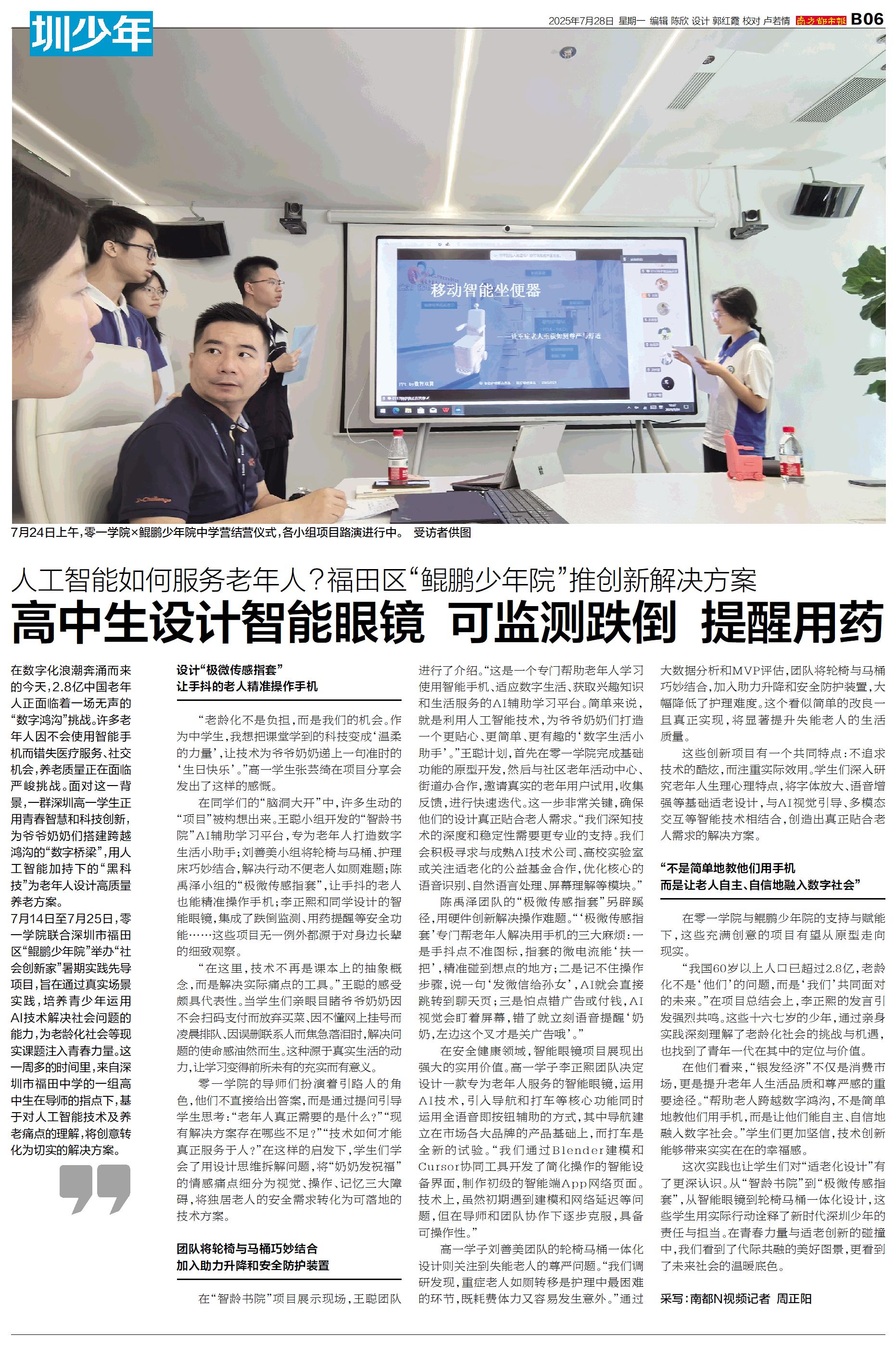高中生设计智能眼镜 可监测跌倒 提醒用药