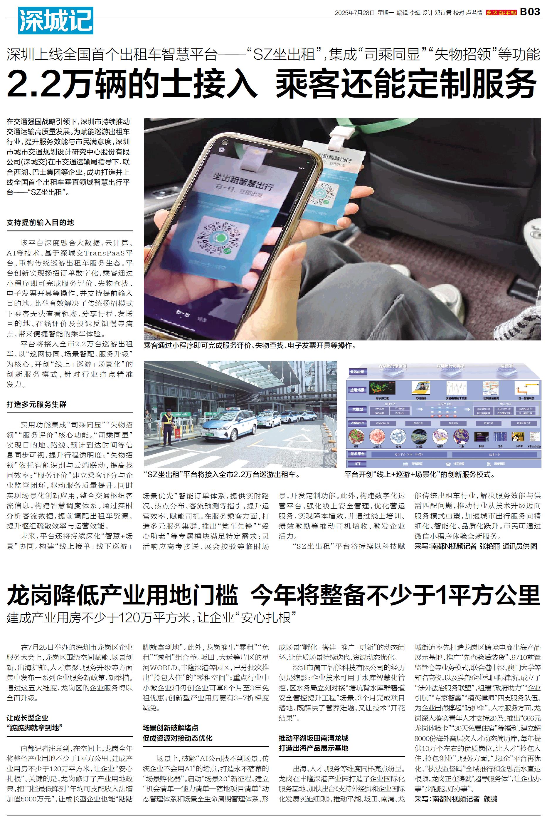 在交通强国战略引领下,深圳市持续推动交通运输高质量发展。为赋能巡游出租车行业,提升服务效能与市民满意度,深圳市城市交通规划设计研究中心股份有限公司(深城交)在市交通运输局指导下,联合西湖、巴士集团