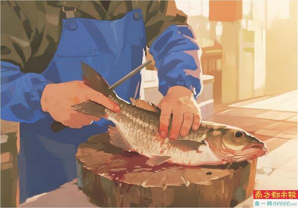 杀鮰鱼时被鱼刺扎手,手指肿胀