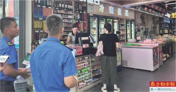 执法人员一行现场检查位于观湖街道的某生活超市,发现门口存在超门线经营情况。执法人员表示,根据新修订的《深圳经济特区市容和环境卫生管理条例》第十七条规定,商场、门店超出门、窗外墙摆卖、经营的,应当符合规范。该超市门店外就是人行通道,货物堆放在门外会阻碍行人通行,属于违规外摆。执法人员要求,若商铺货物较多,建议商家优化一下店铺内的布局,提高空间利用率,也可以根据每天的销售量合理控制进货量,不要囤积过多的货物,以免出现货物放不下的情况。