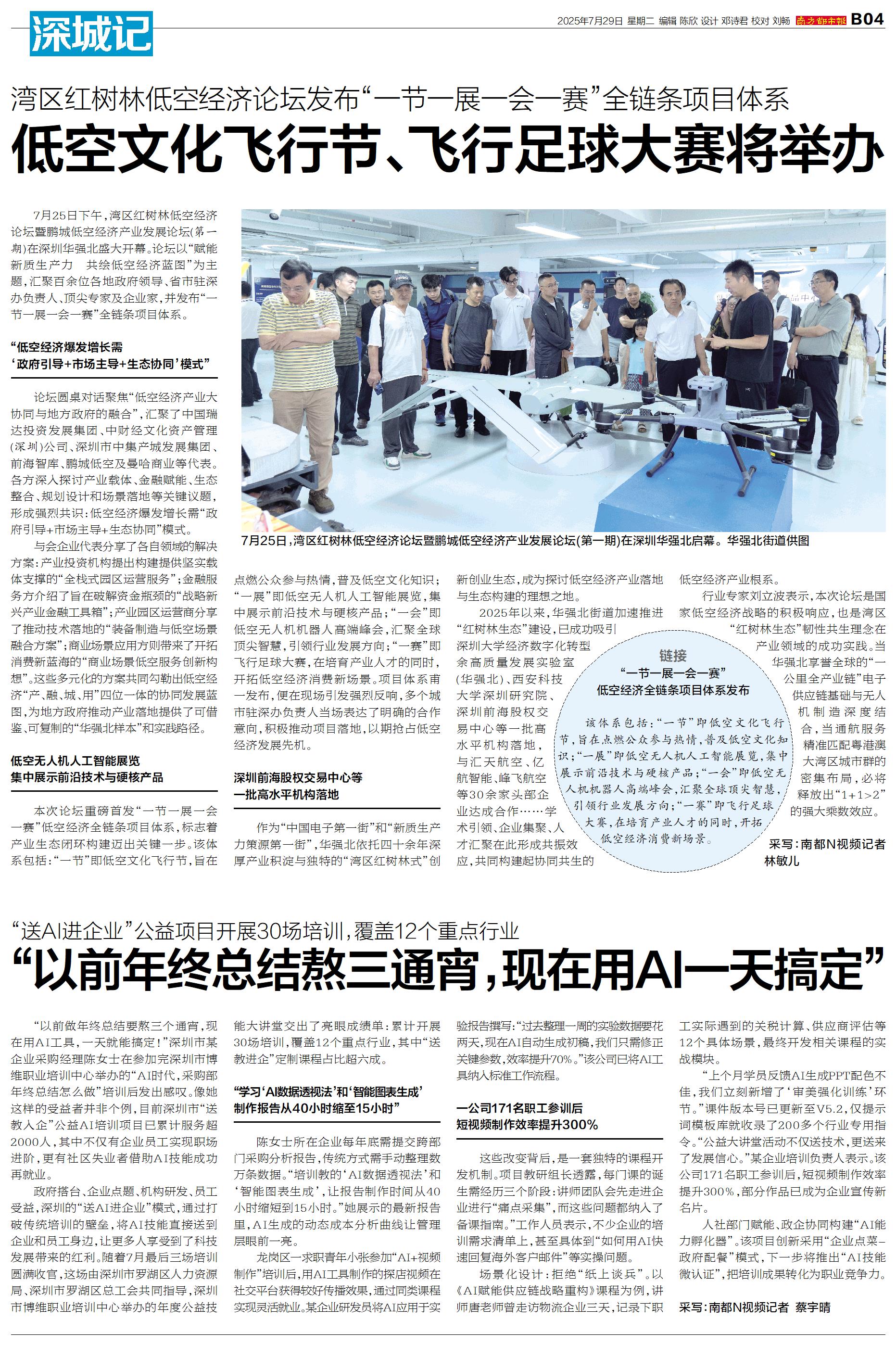 7月25日下午,湾区红树林低空经济论坛暨鹏城低空经济产业发展论坛(第一期)在深圳华强北盛大开幕。论坛以“赋能新质生产力 共绘低空经济蓝图”为主题,汇聚百余位各地政府领导、省市驻深办负责人、顶尖专家