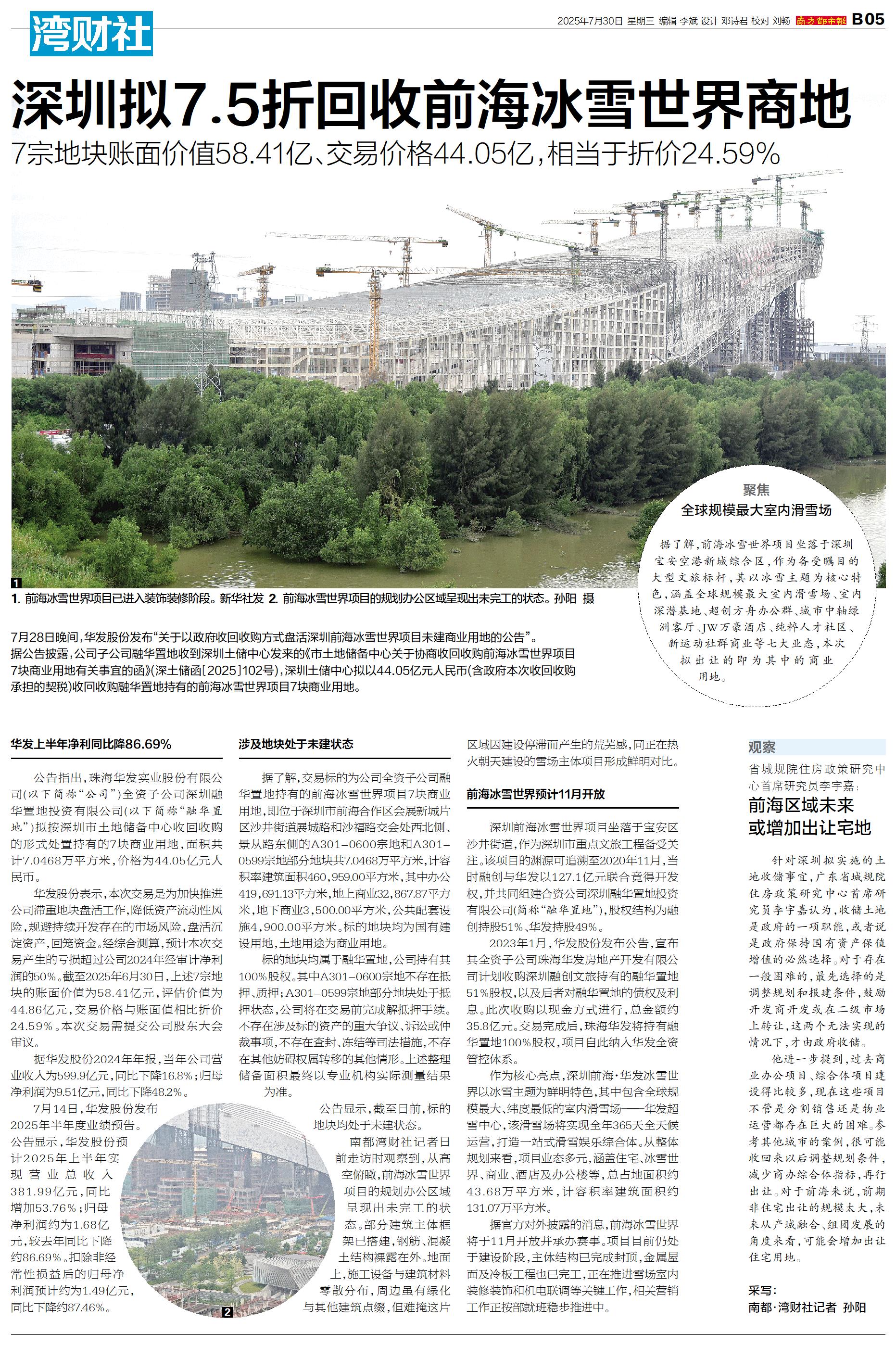 7月28日晚间,华发股份发布“关于以政府收回收购方式盘活深圳前海冰雪世界项目未建商业用地的公告”。 据公告披露,公司子公司融华置地收到深圳土储中心发来的《市土地储备中心关于协商收回收购前海冰雪世