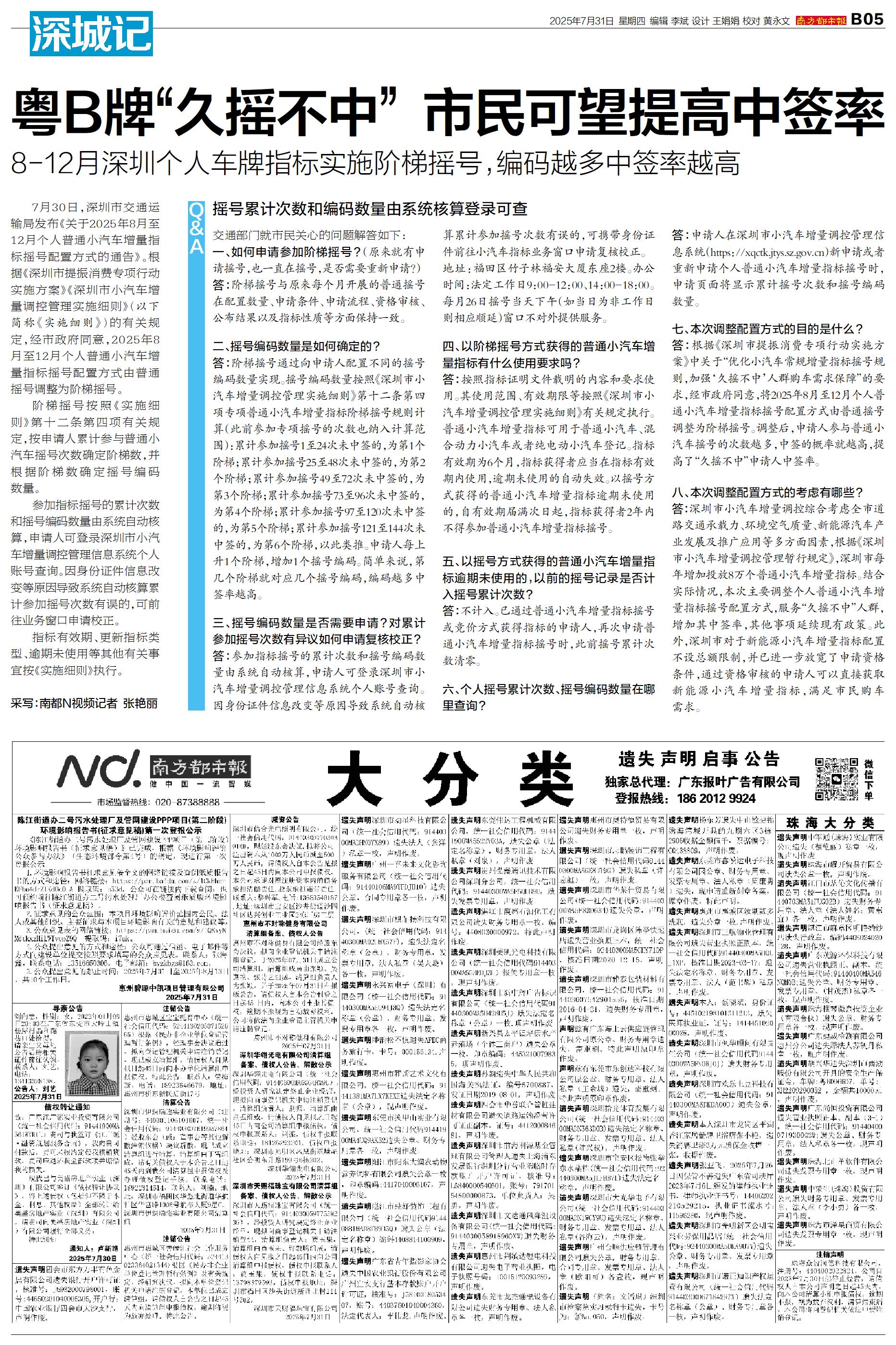 7月30日,深圳市交通运输局发布《关于2025年8月至12月个人普通小汽车增量指标摇号配置方式的通告》。根据《深圳市提振消费专项行动实施方案》《深圳市小汽车增量调控管理实施细则》(以下简称《实施细则》)的有关规定,经市政府同意,2025年8月至12月个人普通小汽车增量指标摇号配置方式由普通摇号调整为阶梯摇号。