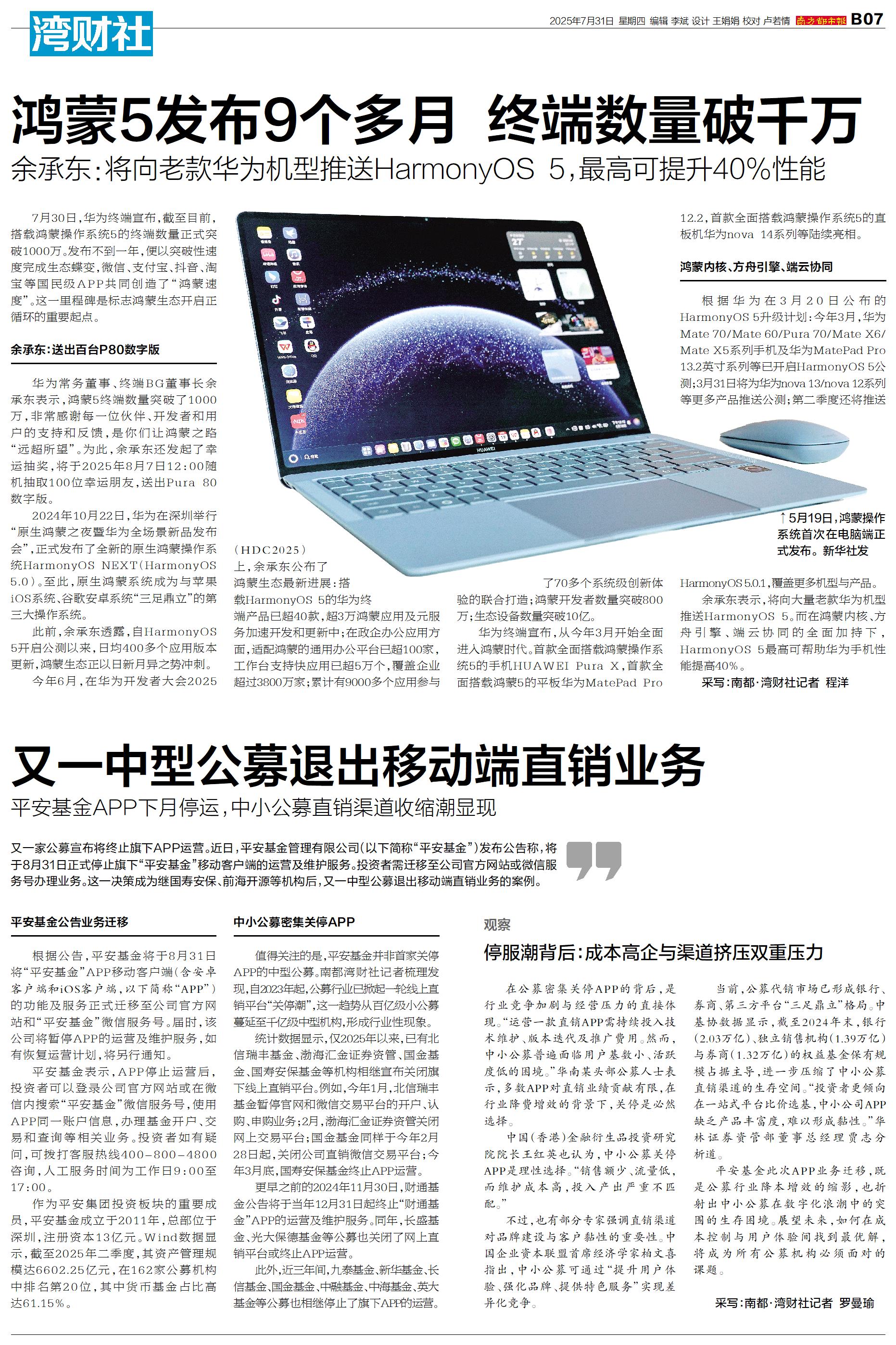 7月30日,华为终端宣布,截至目前,搭载鸿蒙操作系统5的终端数量正式突破1000万。发布不到一年,便以突破性速度完成生态蝶变,微信、支付宝、抖音、淘宝等国民级APP共同创造了“鸿蒙速度”。这一里程