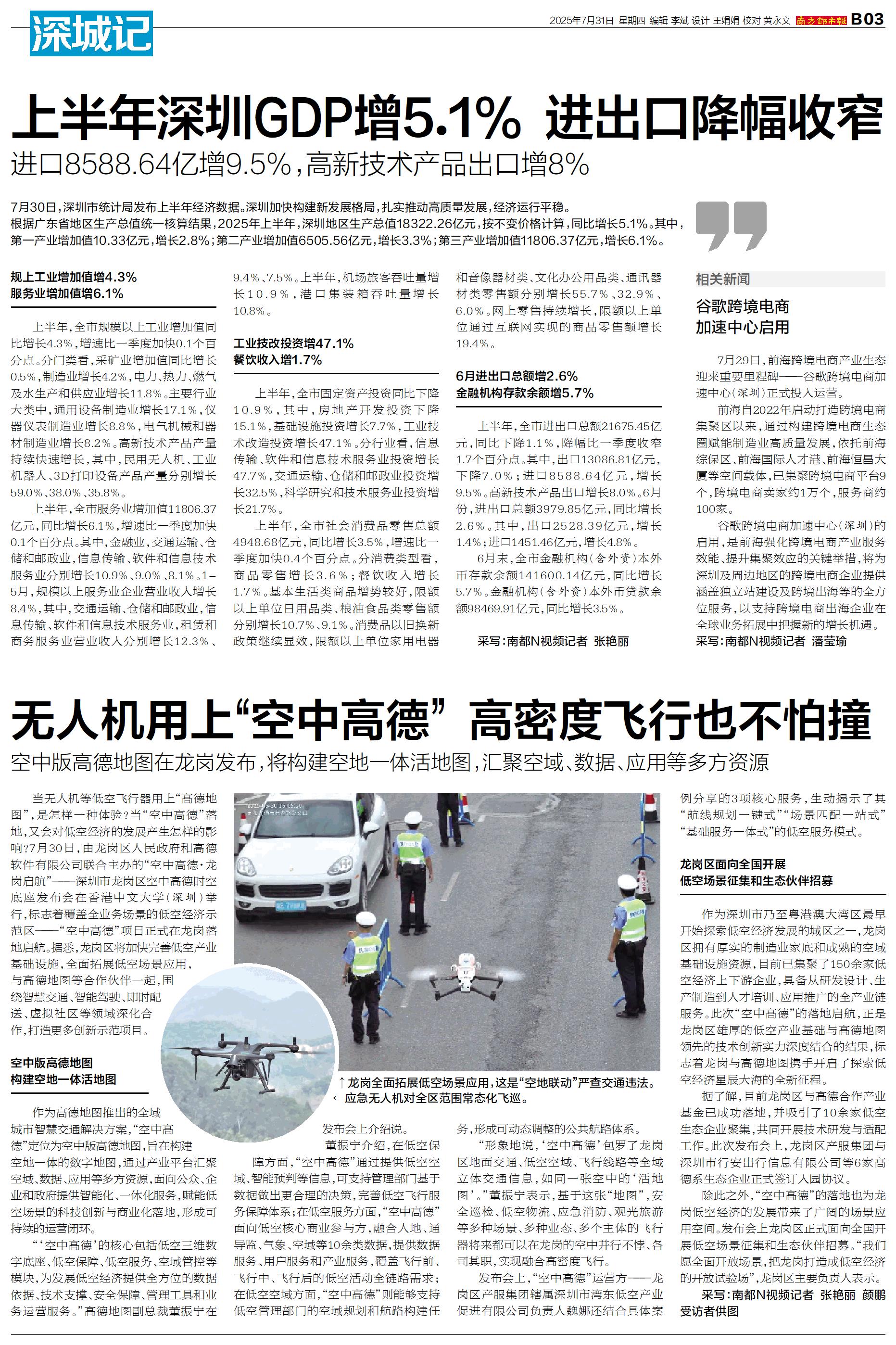 7月30日,深圳市统计局发布上半年经济数据。深圳加快构建新发展格局,扎实推动高质量发展,经济运行平稳。 根据广东省地区生产总值统一核算结果,2025年上半年,深圳地区生产总值18322.26亿元