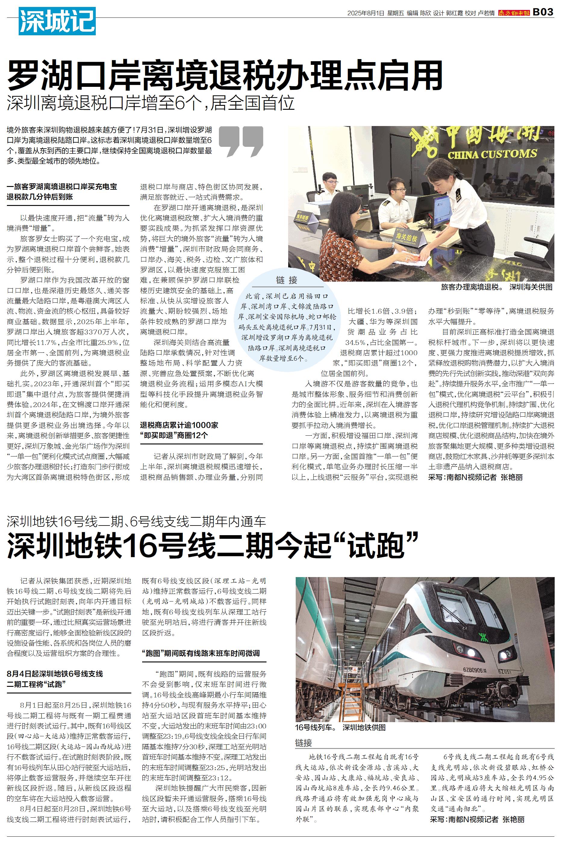 记者从深铁集团获悉,近期深圳地铁16号线二期、6号线支线二期将先后开始执行试跑时刻表,向年内开通目标迈出关键一步。“试跑时刻表”是新线开通前的重要一环,通过比照真实运营场景进行高密度运行,能够全面