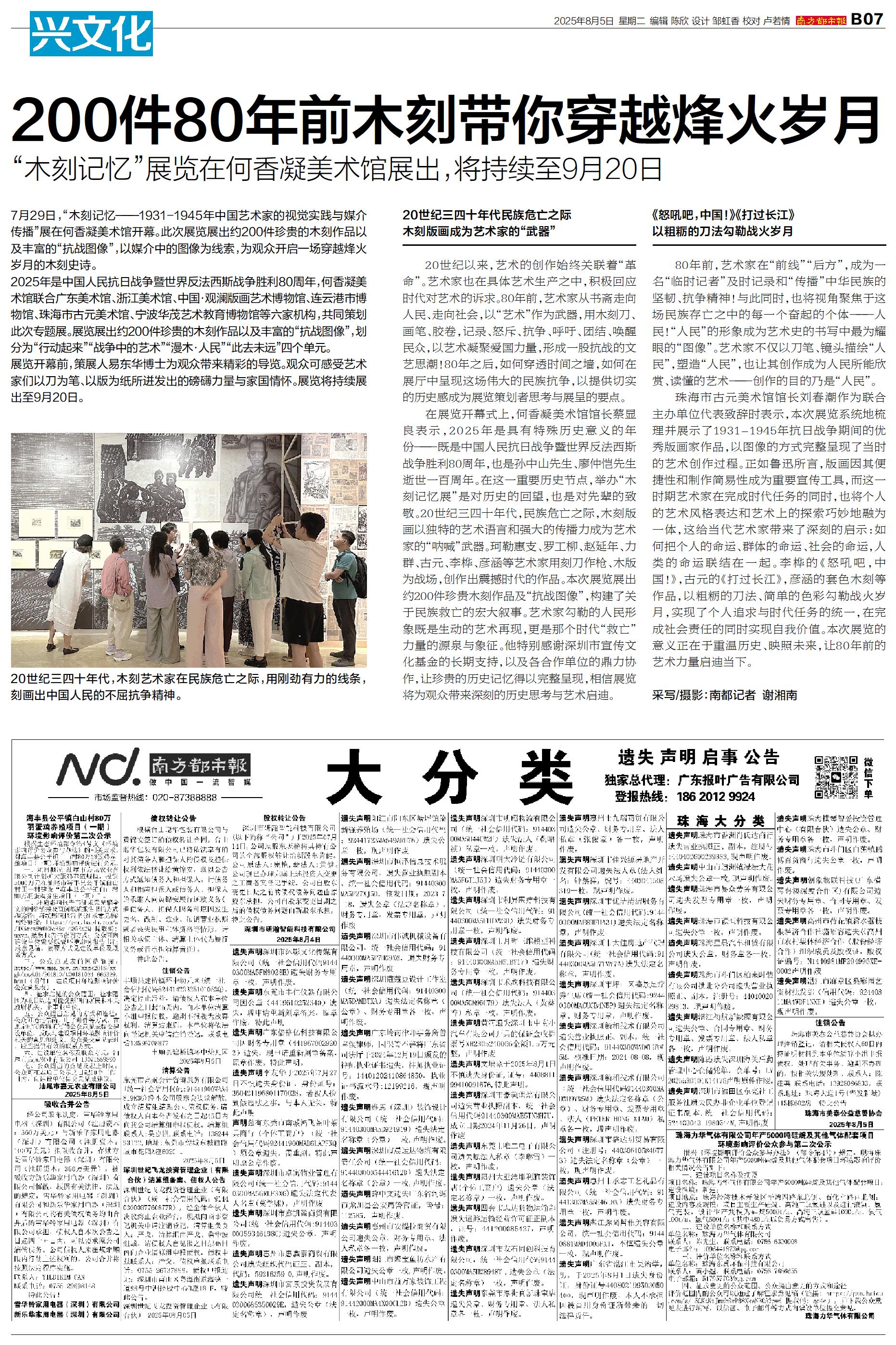 7月29日,“木刻记忆——1931-1945年中国艺术家的视觉实践与媒介传播”展在何香凝美术馆开幕。此次展览展出约200件珍贵的木刻作品以及丰富的“抗战图像”,以媒介中的图像为线索,为观众开启一场