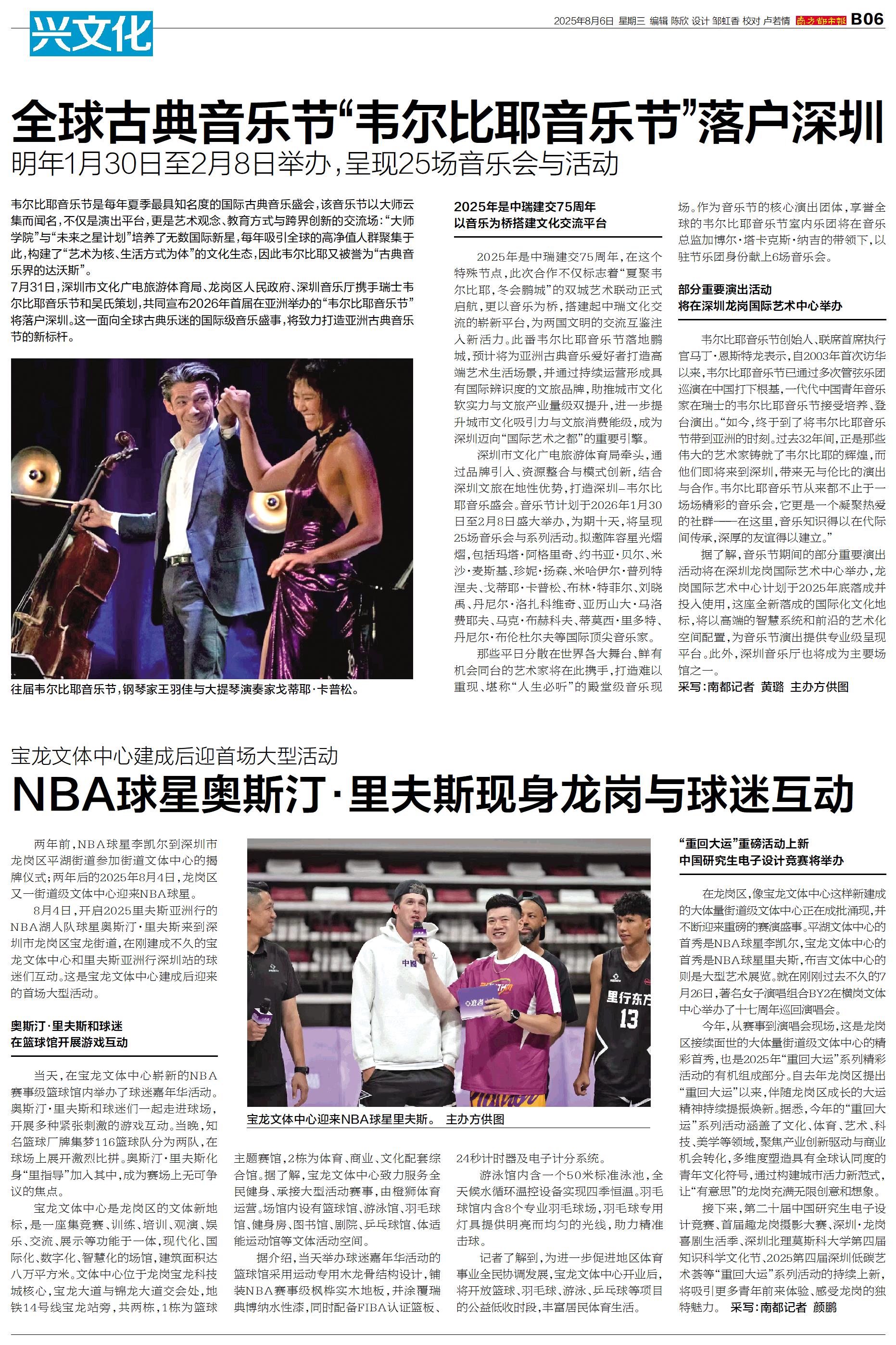 两年前,NBA球星李凯尔到深圳市龙岗区平湖街道参加街道文体中心的揭牌仪式;两年后的2025年8月4日,龙岗区又一街道级文体中心迎来NBA球星。 8月4日,开启2025里夫斯亚洲行的NBA湖人队球