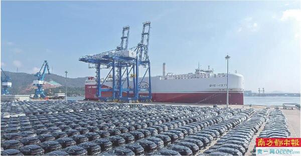 自比亚迪深汕基地宋plus、宋Pro出口车型生产下线后,小漠港“港厂联动”优势持续释放,交出亮眼成绩单:7月8日小漠港首迎比亚迪“深圳号”滚装船,比亚迪深汕基地出口车型首次通过地跑形式5分钟集港,实现“出厂即出港”;7月18日比亚迪“郑州号”在小漠港开启新船首航;7月28日小漠港新开通澳洲滚装外贸航线。