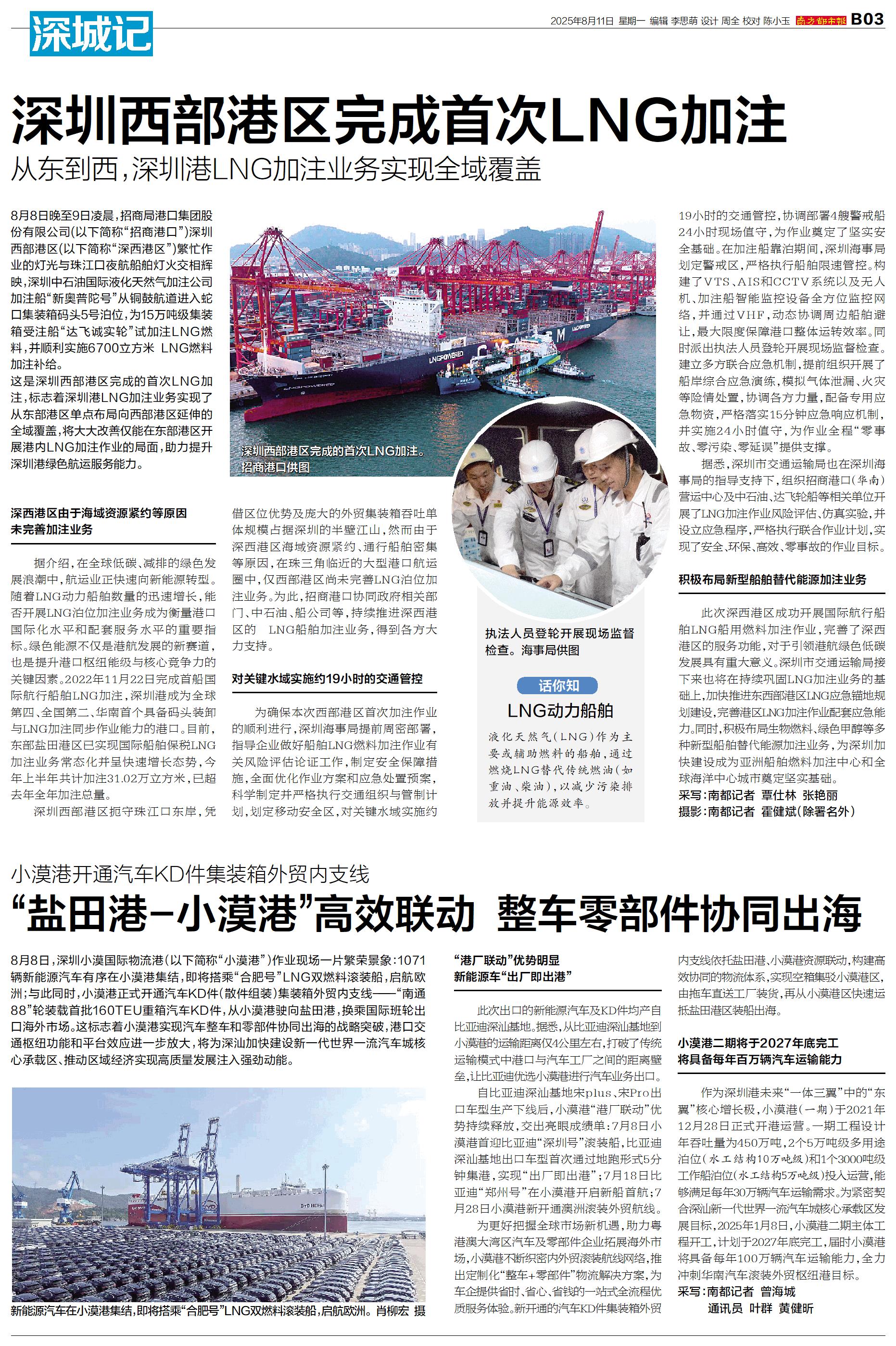 8月8日晚至9日凌晨,招商局港口集团股份有限公司(以下简称“招商港口”)深圳西部港区(以下简称“深西港区”)繁忙作业的灯光与珠江口夜航船舶灯火交相辉映,深圳中石油国际液化天然气加注公司加注船“新奥