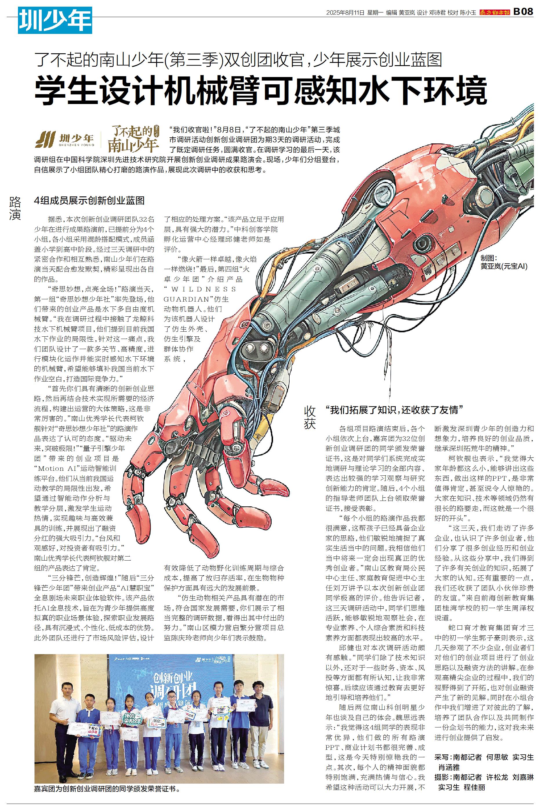 “我们收官啦!”8月8日,“了不起的南山少年”第三季城市调研活动创新创业调研团为期3天的调研活动,完成了既定调研任务,圆满收官。在调研学习的最后一天,该调研组在中国科学院深圳先进技术研究院开展创新
