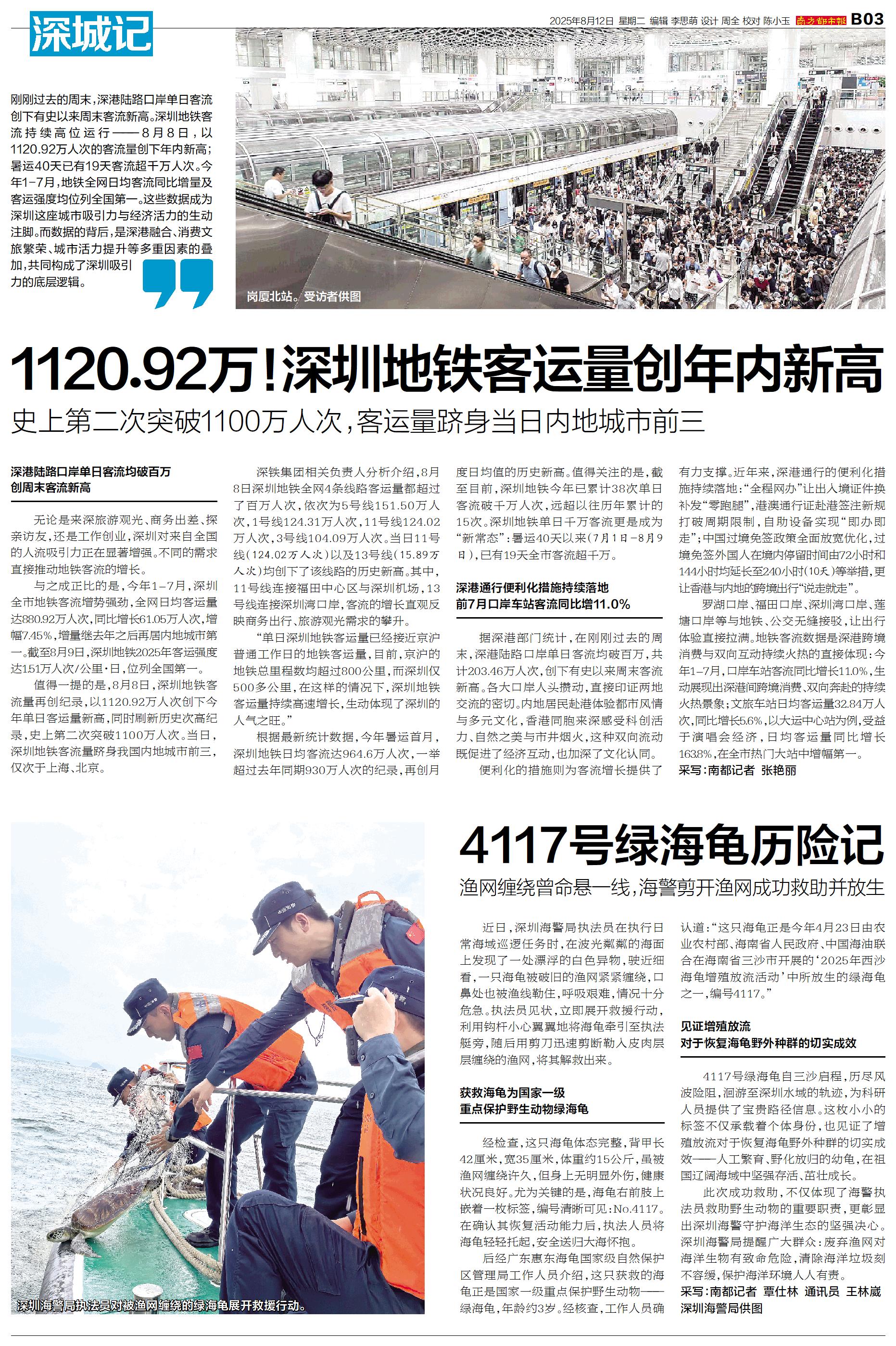 刚刚过去的周末,深港陆路口岸单日客流创下有史以来周末客流新高。深圳地铁客流持续高位运行——8月8日,以1120.92万人次的客流量创下年内新高;暑运40天已有19天客流超千万人次。今年1-7月,地