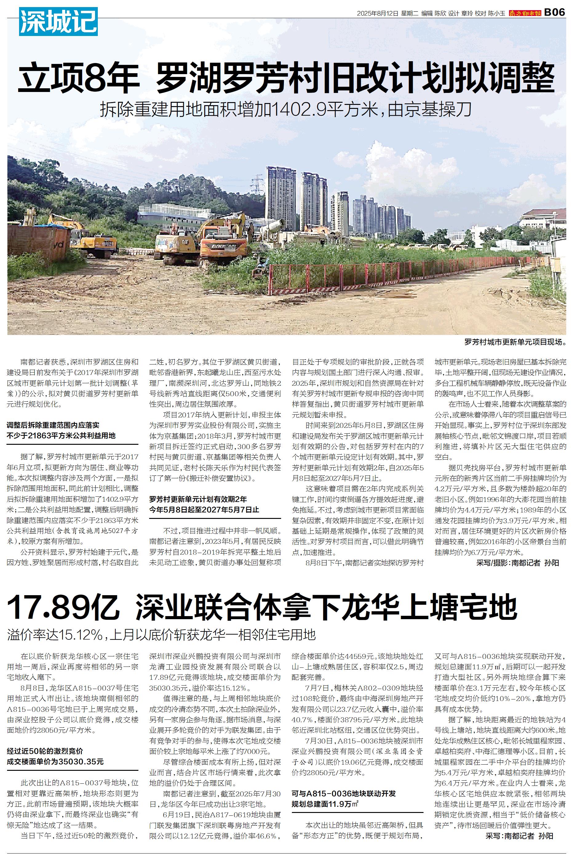 南都记者获悉,深圳市罗湖区住房和建设局日前发布关于《2017年深圳市罗湖区城市更新单元计划第一批计划调整(草案)》的公示,拟对黄贝街道罗芳村更新单元进行规划优化。 调整后拆除重建范围内应落实
