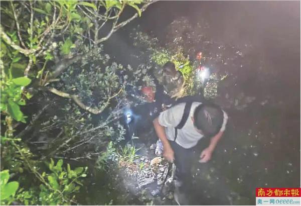 救援人员对被困游客进行搜救。 图源:深视新闻