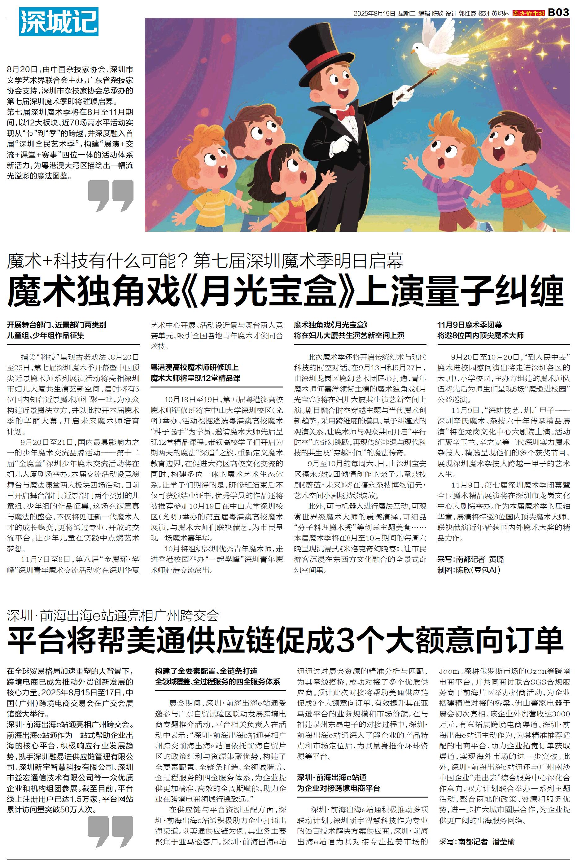 8月20日,由中国杂技家协会、深圳市文学艺术界联合会主办,广东省杂技家协会支持,深圳市杂技家协会总承办的第七届深圳魔术季即将璀璨启幕。 第七届深圳魔术季将在8月至11月期间,以12大板块、近70