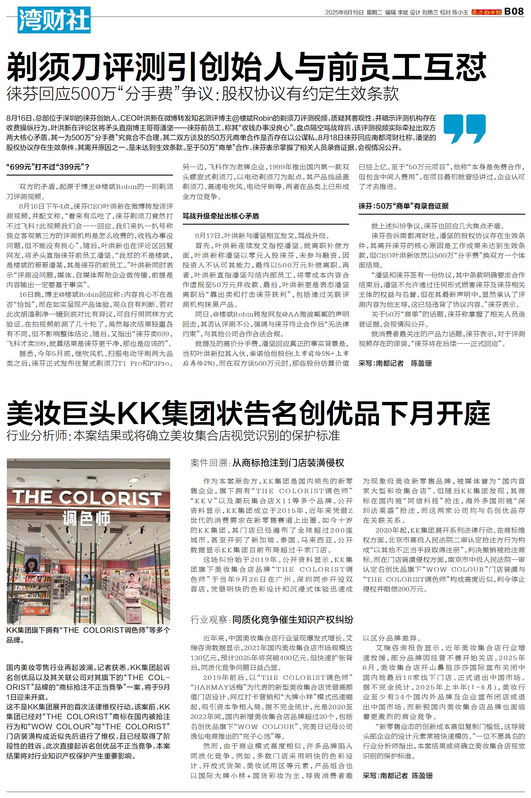 国内美妆零售行业再起波澜。记者获悉,KK集团起诉名创优品以及其关联公司对其旗下的“THE COLORIST”品牌的“商标抢注不正当竞争”一案,将于9月1日迎来开庭。 这不是KK集团展开的首次法律