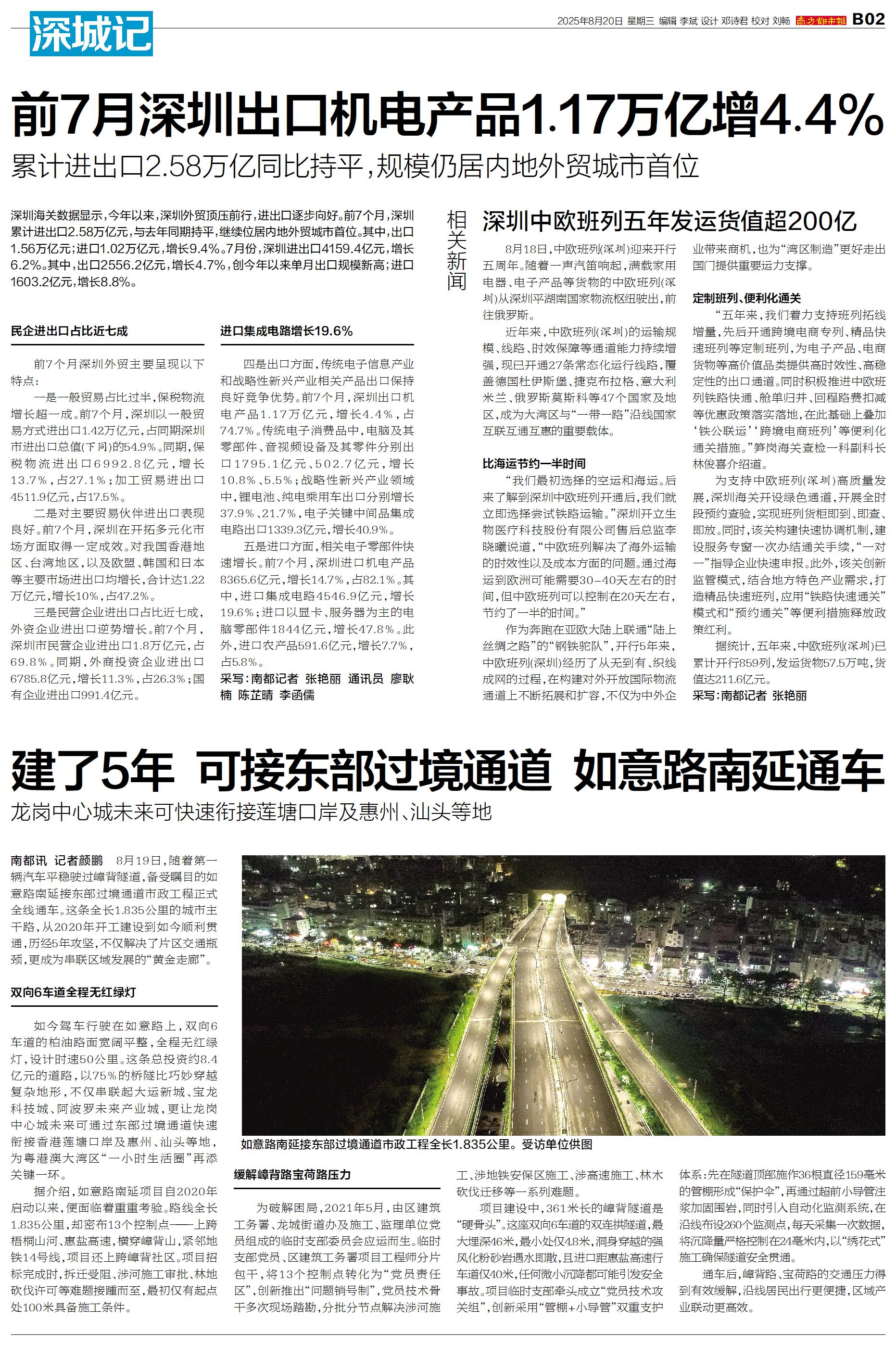 南都讯 记者颜鹏 8月19日,随着第一辆汽车平稳驶过嶂背隧道,备受瞩目的如意路南延接东部过境通道市政工程正式全线通车。这条全长1.835公里的城市主干路,从2020年开工建设到如今顺利贯通,历经5