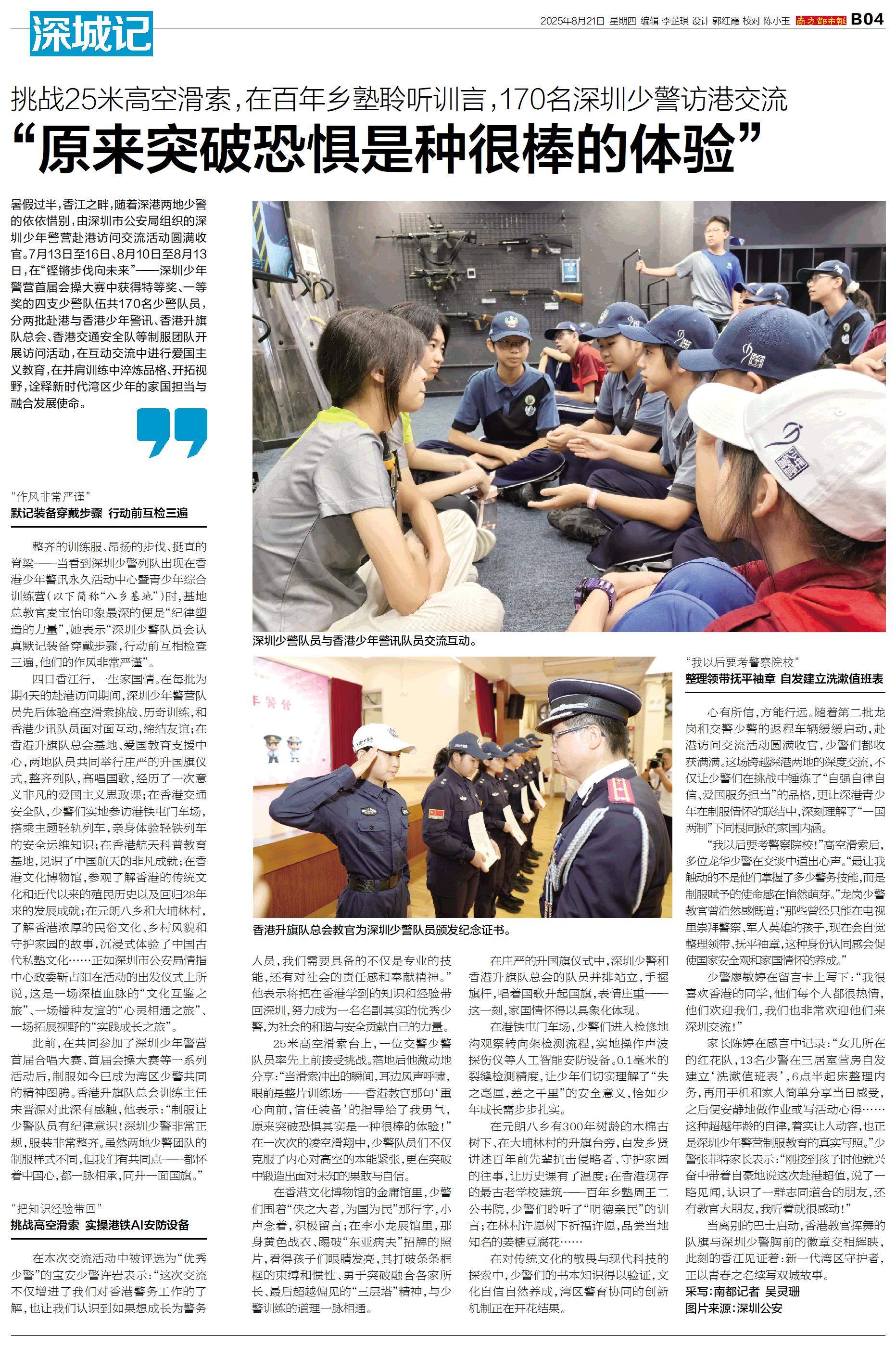 暑假过半,香江之畔,随着深港两地少警的依依惜别,由深圳市公安局组织的深圳少年警营赴港访问交流活动圆满收官。7月13日至16日、8月10日至8月13日,在“铿锵步伐向未来”——深圳少年警营首届会操大