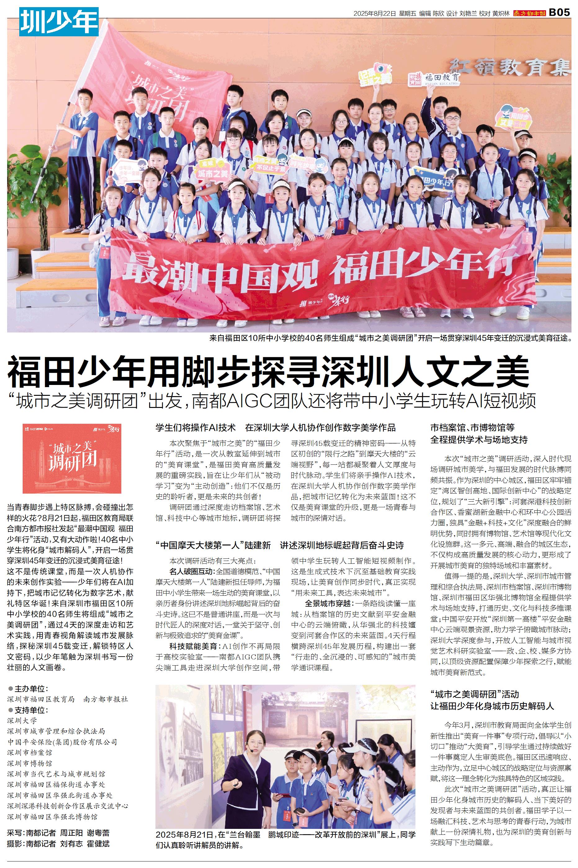 当青春脚步遇上特区脉搏,会碰撞出怎样的火花?8月21日起,福田区教育局联合南方都市报社发起“最潮中国观 福田少年行”活动,又有大动作啦!40名中小学生将化身“城市解码人”,开启一场贯穿深圳45年变