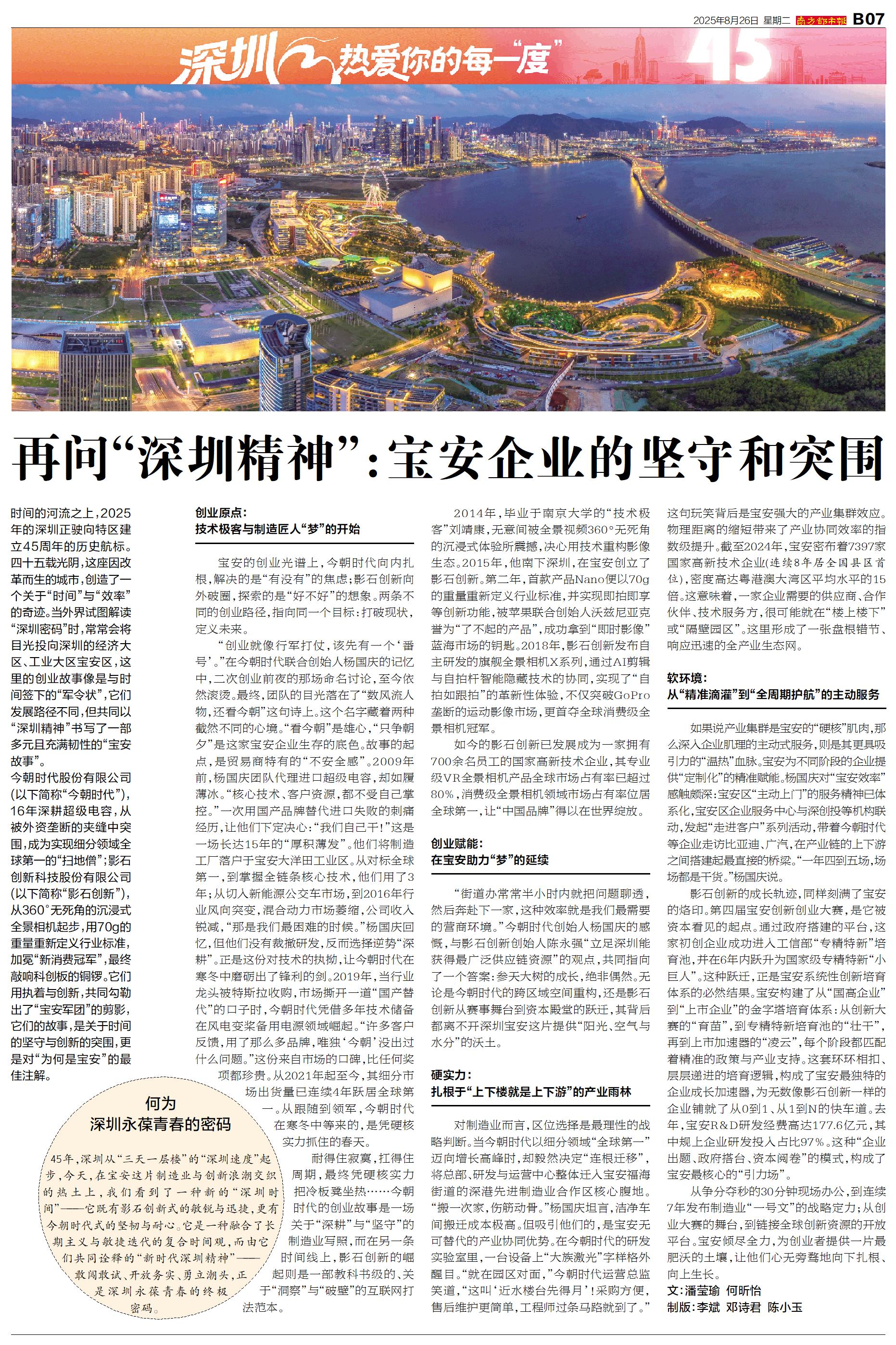 45年,深圳从“三天一层楼”的“深圳速度”起步,今天,在宝安这片制造业与创新浪潮交织的热土上,我们看到了一种新的“深圳时间”——它既有影石创新式的敏锐与迅捷,更有今朝时代式的坚韧与耐心。它是一种融合了长期主义与敏捷迭代的复合时间观,而由它们共同诠释的“新时代深圳精神”——敢闯敢试、开放务实、勇立潮头,正是深圳永葆青春的终极密码。