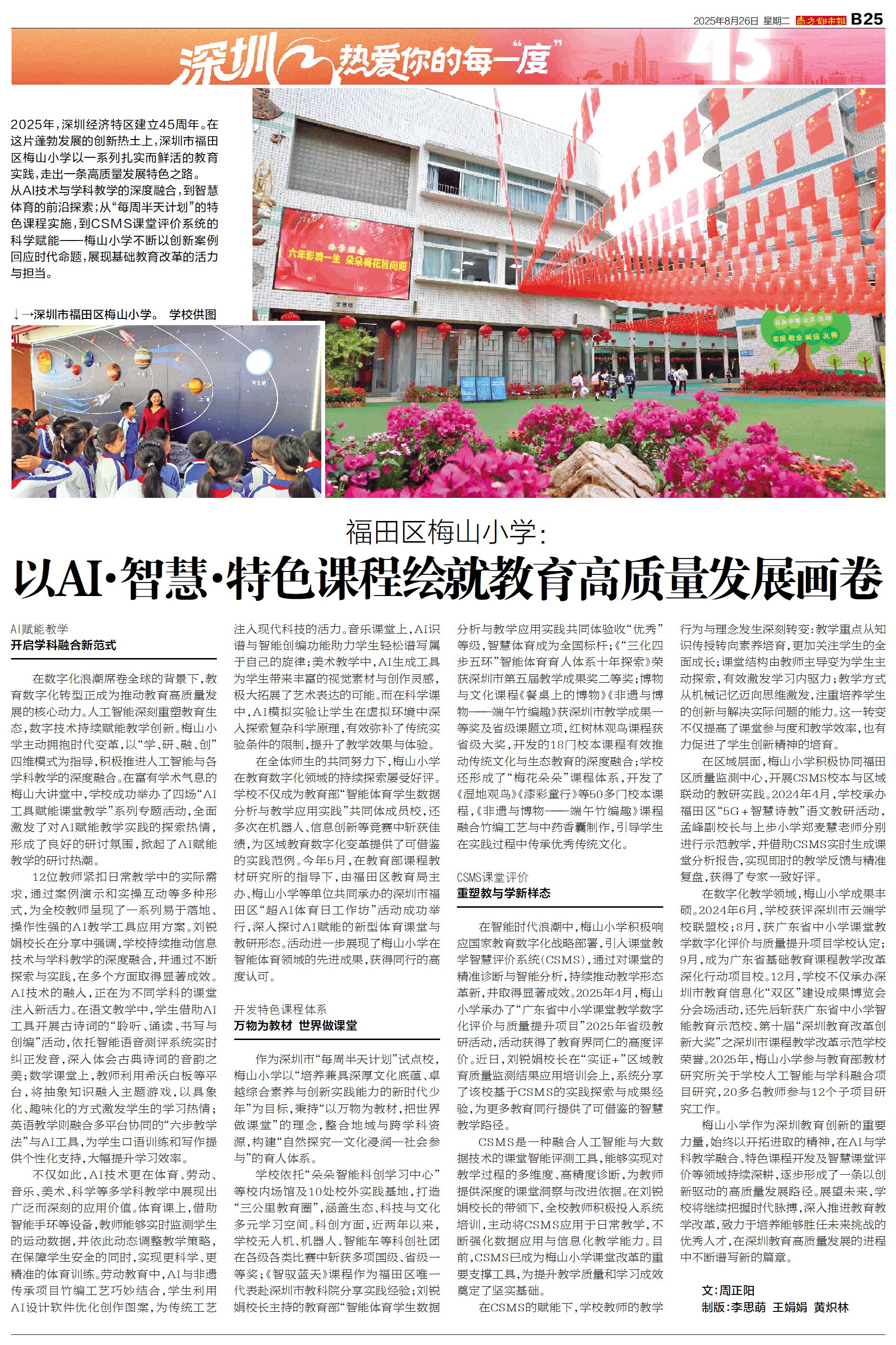 2025年,深圳经济特区建立45周年。在这片蓬勃发展的创新热土上,深圳市福田区梅山小学以一系列扎实而鲜活的教育实践,走出一条高质量发展特色之路。
