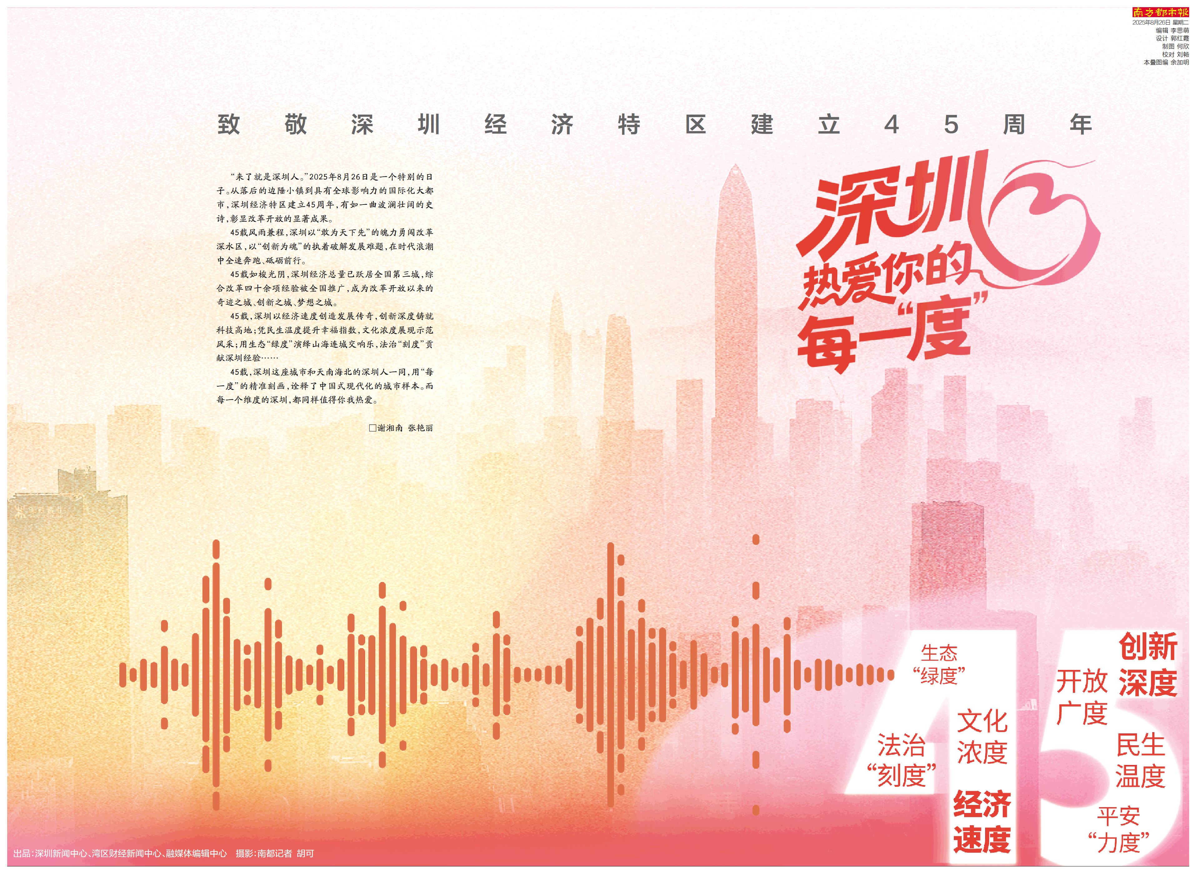 “来了就是深圳人。”2025年8月26日是一个特别的日子。从落后的边陲小镇到具有全球影响力的国际化大都市,深圳经济特区建立45周年,有如一曲波澜壮阔的史诗,彰显改革开放的显著成果。