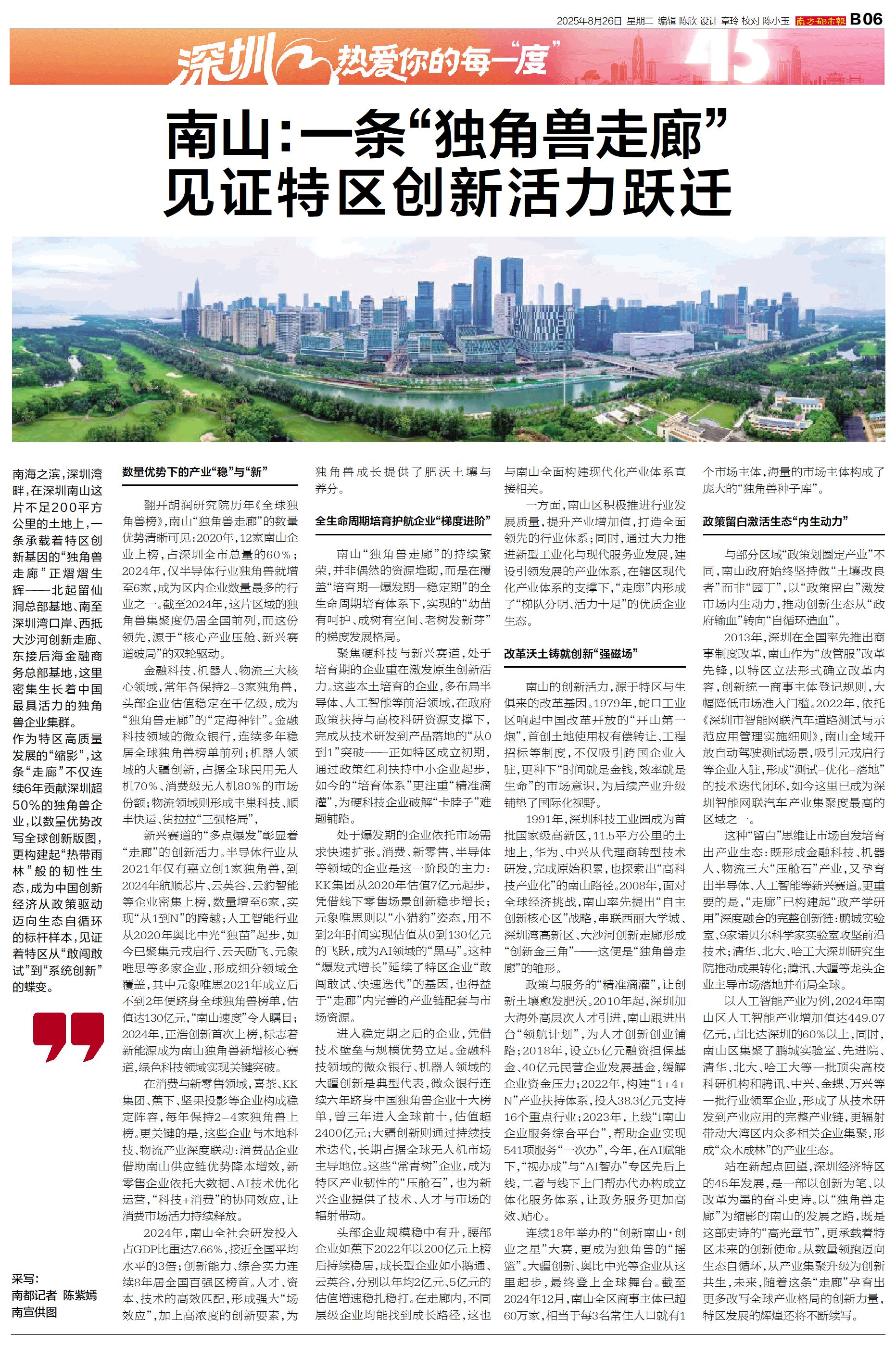 南山:一条“独角兽走廊”见证特区创新活力跃迁