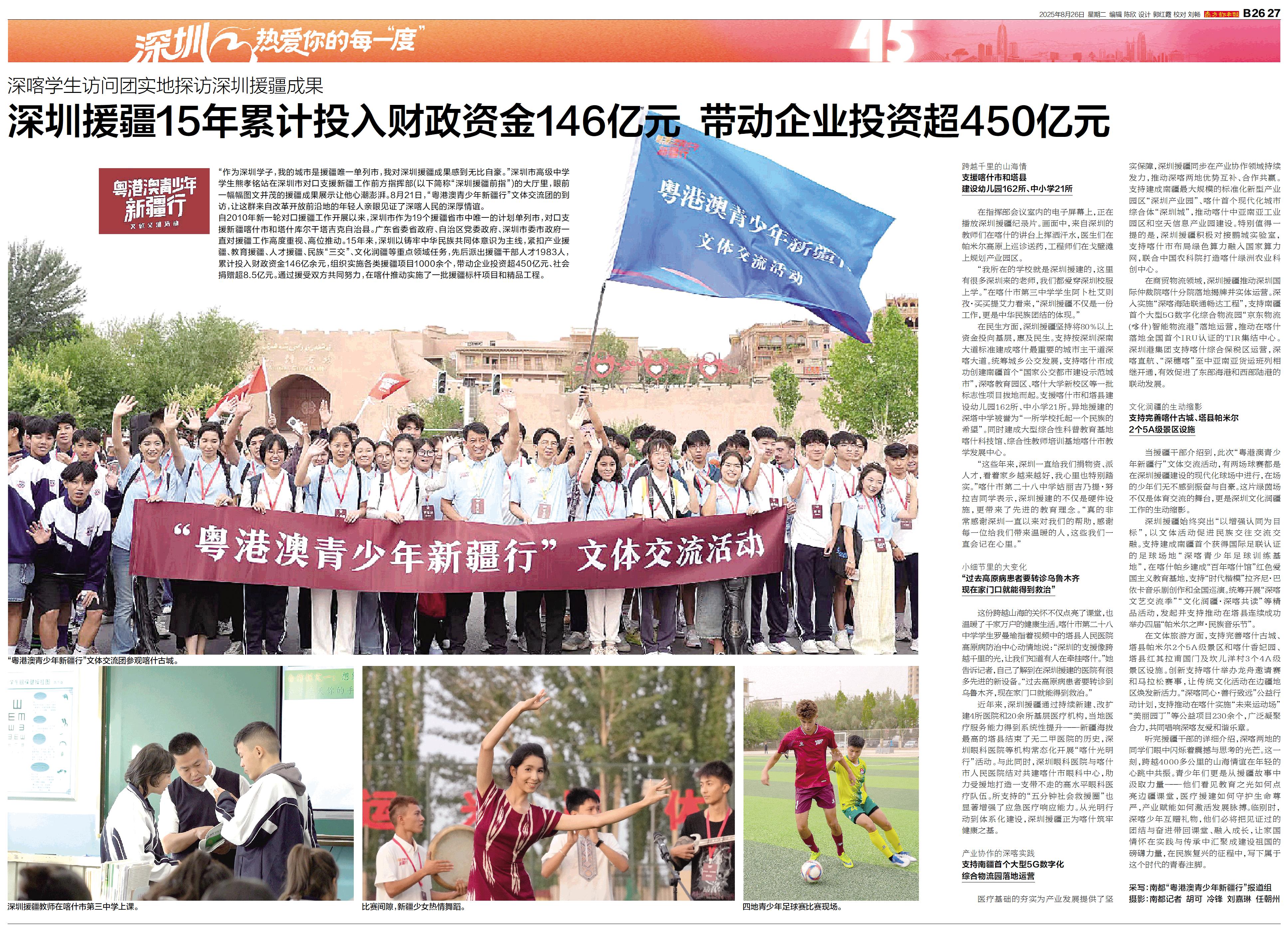 深圳援疆15年累计投入财政资金146亿元 带动企业投资超450亿元