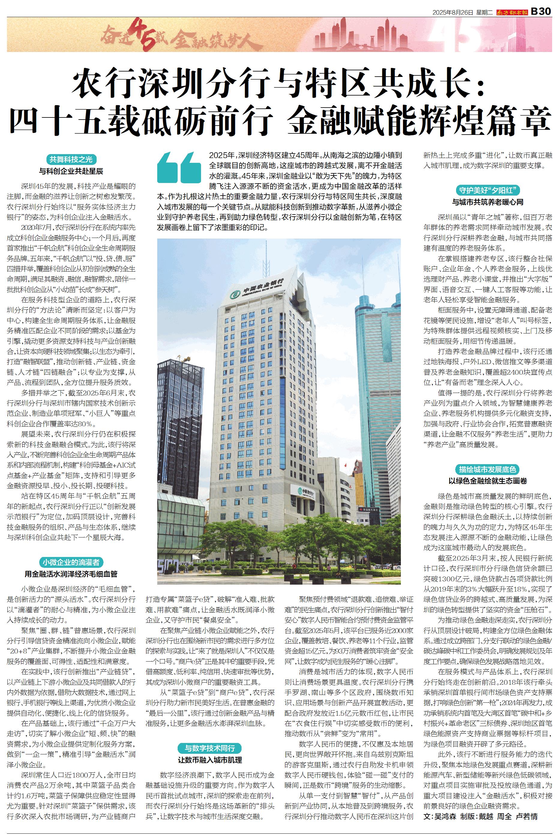 农行深圳分行与特区共成长:四十五载砥砺前行 金融赋能辉煌篇章