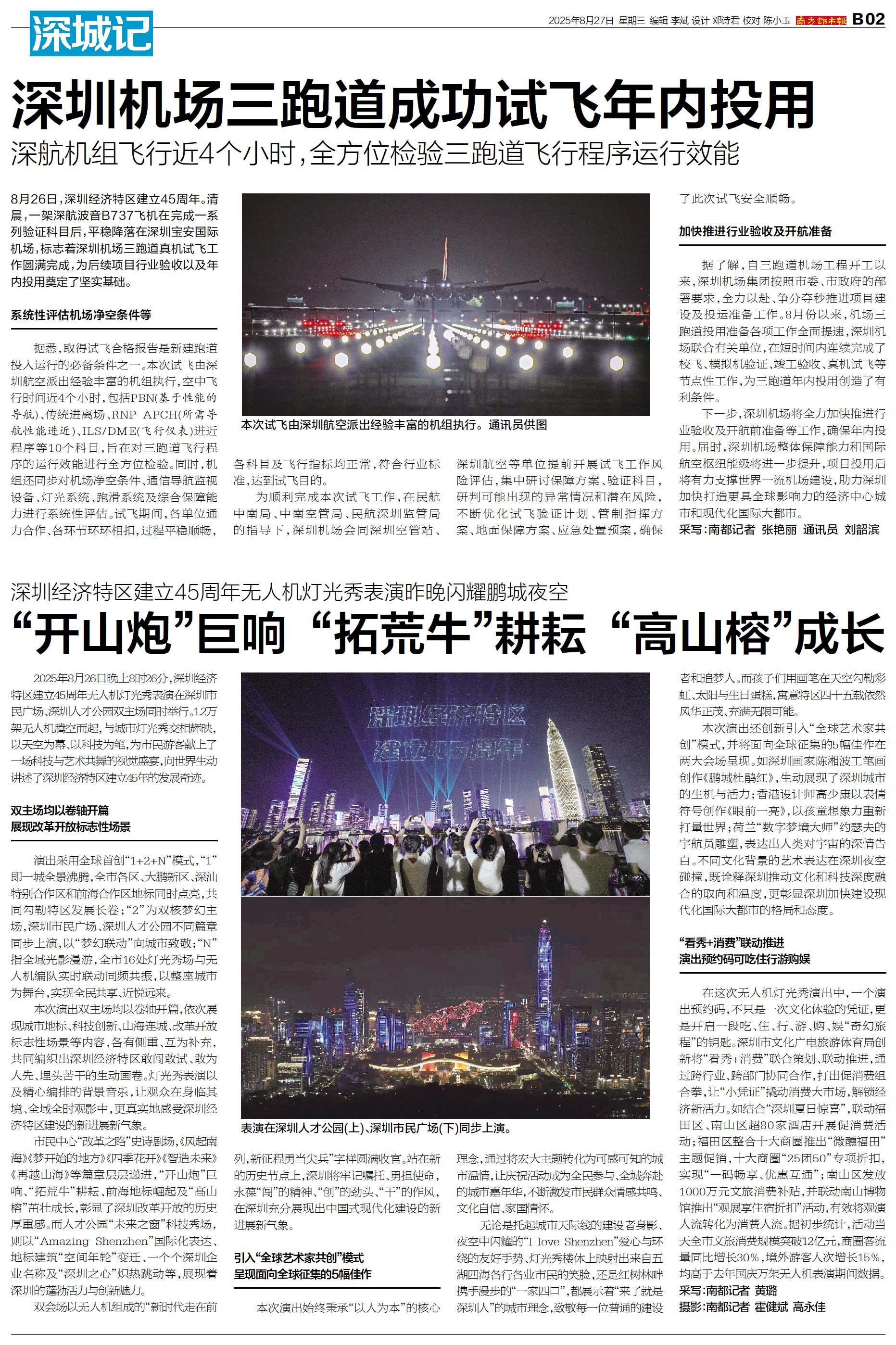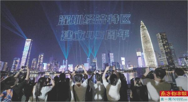2025年8月26日晚上8时26分,深圳经济特区建立45周年无人机灯光秀表演在深圳市民广场、深圳人才公园双主场同时举行。1.2万架无人机腾空而起,与城市灯光秀交相辉映,以天空为幕、以科技为笔,为市民游客献上了一场科技与艺术共舞的视觉盛宴,向世界生动讲述了深圳经济特区建立45年的发展奇迹。
