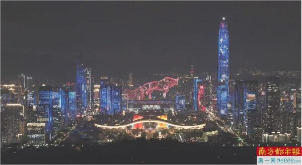 本次演出双主场均以卷轴开篇,依次展现城市地标、科技创新、山海连城、改革开放标志性场景等内容,各有侧重、互为补充,共同编织出深圳经济特区敢闯敢试、敢为人先、埋头苦干的生动画卷。灯光秀表演以及精心编排的背景音乐,让观众在身临其境、全域全时观影中,更真实地感受深圳经济特区建设的新进展新气象。