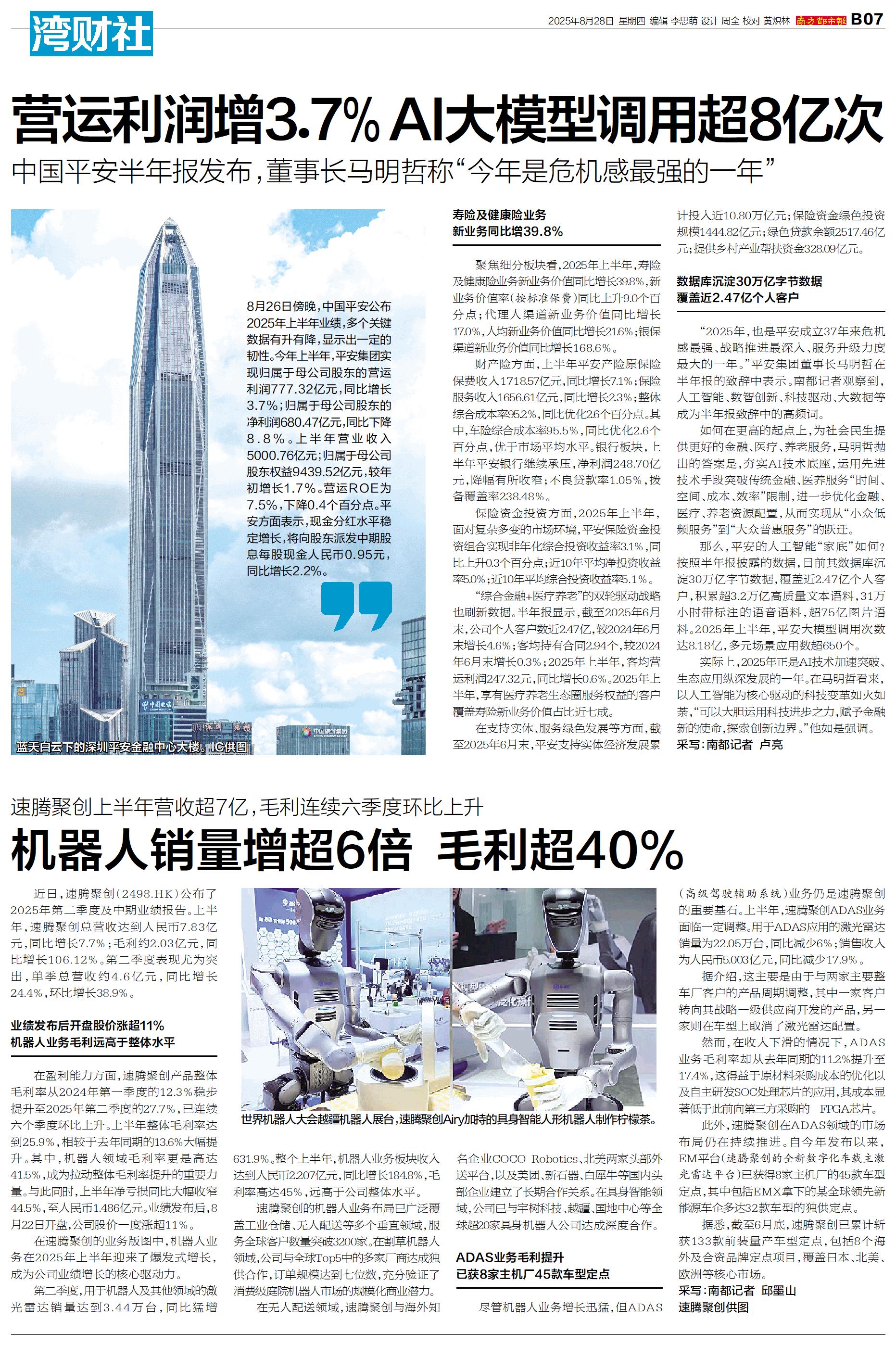 8月26日傍晚,中国平安公布2025年上半年业绩,多个关键数据有升有降,显示出一定的韧性。今年上半年,平安集团实现归属于母公司股东的营运利润777.32亿元,同比增长3.7%;归属于母公司股东的净